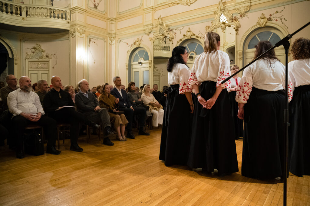 Maestrove skladbe i obrade napjeva izvodili su muške klape Filip Dević i Mriža iz Splita, ženska klapa Orca iz Splita i ženska klapa Neverin iz Kaštel Lukšića. Komemoracija je završila zajedničkom izvedbom napjeva „Pismo moja, hrli tamo“ koji je postao svojevrstan simbol i himna dalmatinske tradicijske klapske pjesme. Moderatorica komemoracije bila je Edita Lučić Jelić.
