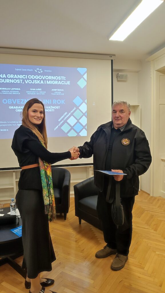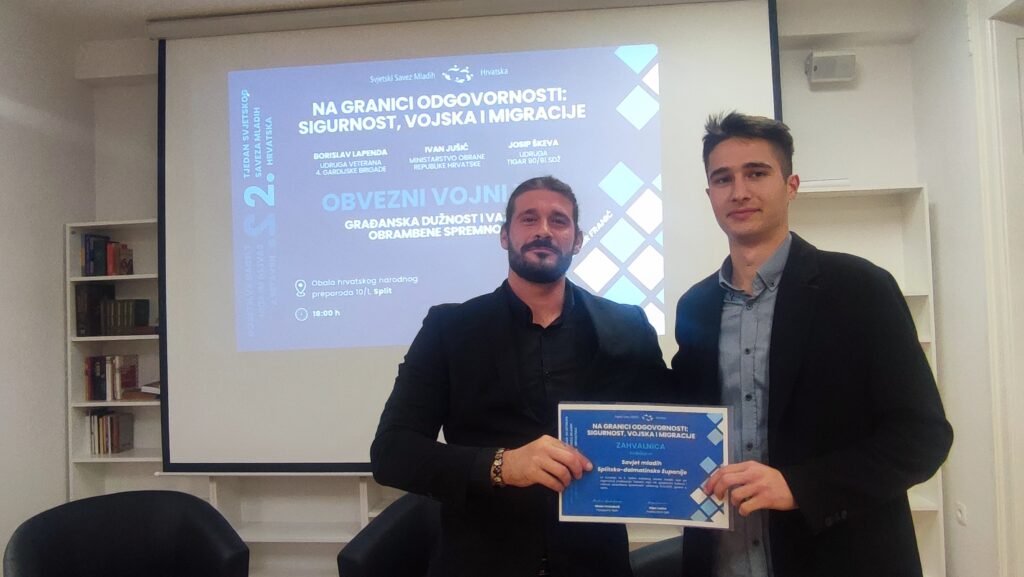 U srijedu, 10. prosinca 2025., na adresi Obala hrvatskog narodnog preporoda 10/1 u Splitu, održano je javno predavanje i rasprava pod nazivom „Obvezni vojni rok – građanska dužnost i važnost obrambene spremnosti“ u sklopu 2. Tjedna splitske podružnice Svjetskog saveza mladih Hrvatska.