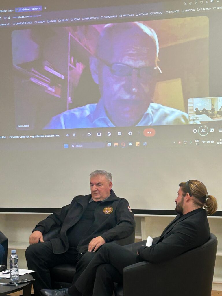 Gospodin Jušić govorio je iz perspektive Ministarstva obrane RH, predstavivši kako će izgledati temeljna vojna obuka od 2026. godine, upućene pozive mladima, kao i svoje vlastito iskustvo iz Domovinskog rata. Posebno je naglašena važnost sustavnog rada s mladim kadrovima unutar obrambenog sustava.
