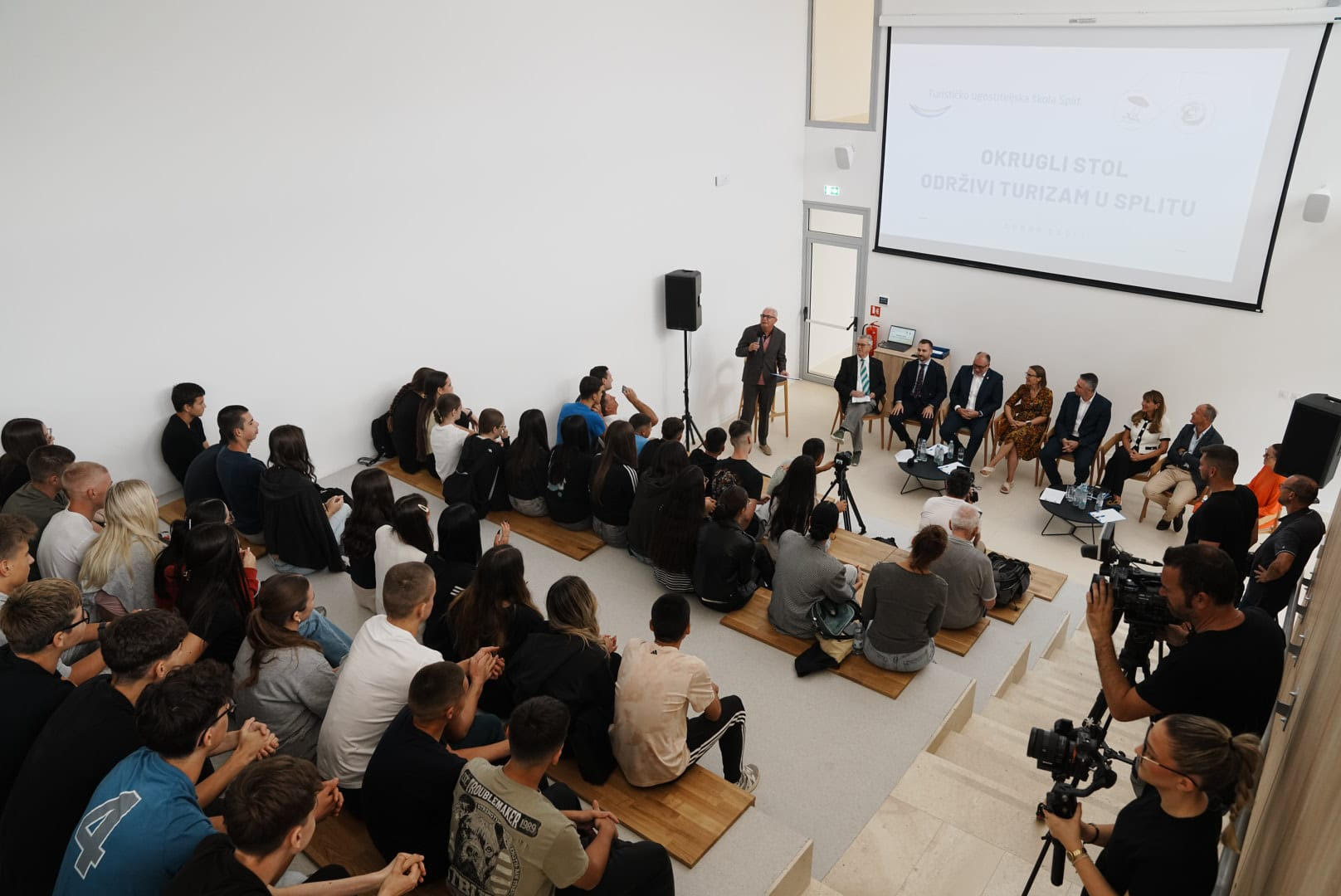 Uz brojne stručnjake, na skupu su sudjelovali i učenici škole, budući nositelji hrvatskog turizma. Moderator, novinar Ivica Đuzel, uvodno je naglasio kako je Split ove sezone premašio tri milijuna noćenja, ali da je cilj budućeg razvoja turizma održivost – manje gostiju, ali veća zarada i kvalitetniji suživot s lokalnim stanovništvom.