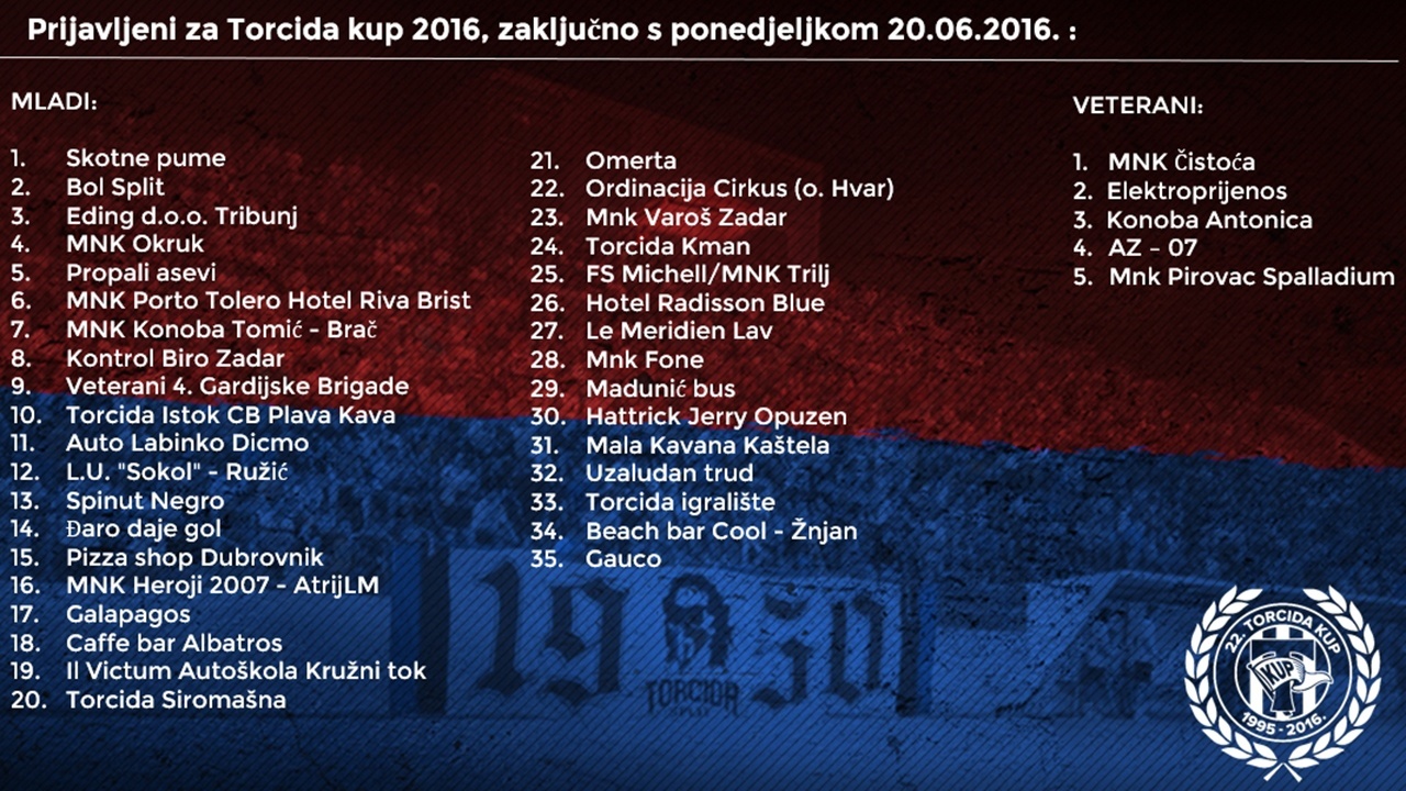 Tri dana prije kraja prijava za ovogodišnji Torcida kup prijavilo se već 40 ekipa.
