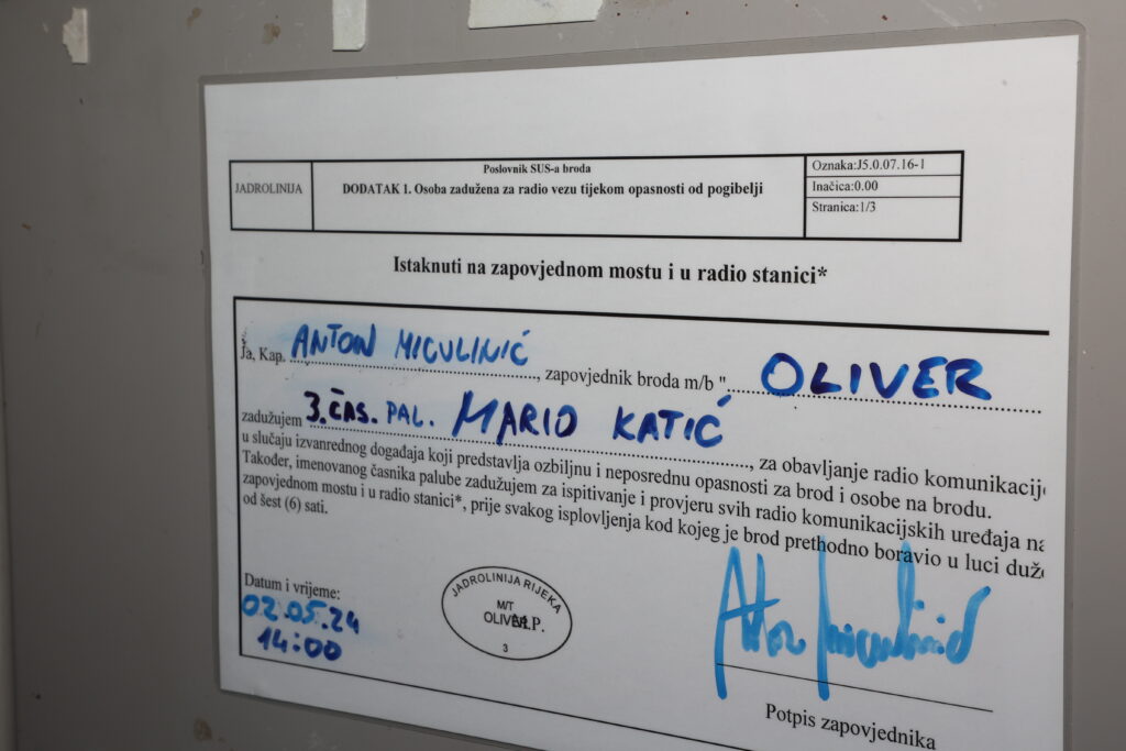 – Ovaj brod može postići brzinu i do 17,5 čvorova, ali ga vozimo do 15 da se držimo plovidbenog reda. Do Vele Luke će, službeno, ići 2 sata i 40 minuta, a naravno da i to sve ovisi o vremenskim prilikama i neprilikama. Trema je bila tijekom pokusne vožnje, ali sve je manje i manje prisutna sada – tehnički je potkovan Miculinić. Puno je puta ovo ponovio pred mikrofonima i kamerama jer svi žele uhvatiti prvi Oliverov “trag u beskraju”.