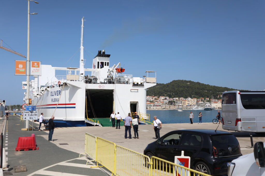 – Idem na rehabilitaciju u Velu Luku. Trajekt ima pokretne skale koje su mi bitne jer sam na štakama. Značit će to i drugim ljudima sigurno…, a Oliver? Pa Oliver će ostati s nama cijeli vijek, ali ovim trajektom sigurno i duže jer će kroz njegove stihove i pjesme ploviti svakog dana – razmišljanja su Matiše Babića koji je kao poput nekog turista prvi ulazak u “Oliverove dvore” ovjekovječio pametnim telefonom. Potpomagao se štakama dok je iz zvučnika pjevala – Đelozija.
