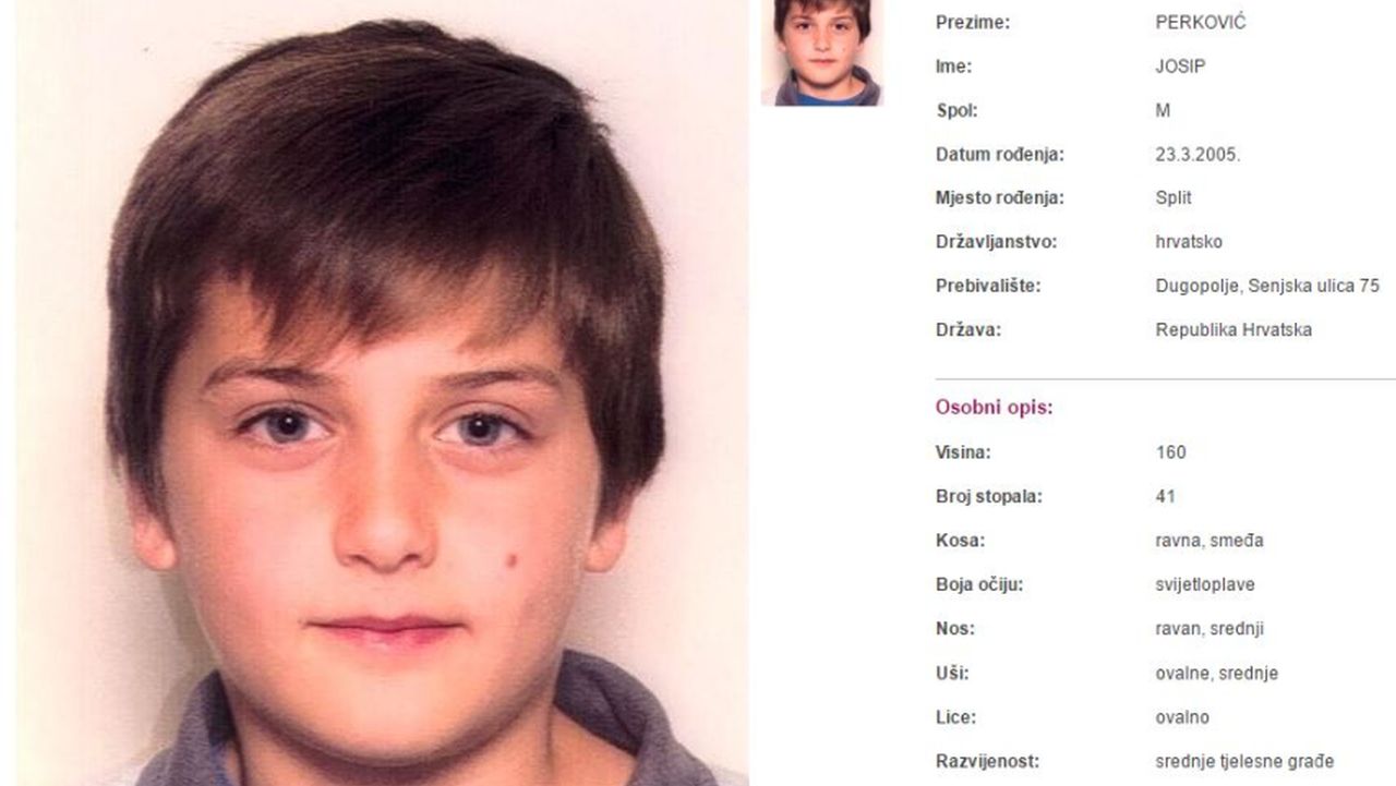 Dvanaestogodišnji Josip Perković, jutros se udaljio s adrese prebivališta u Dugopolju. Otada mu se gubi svaki trag.