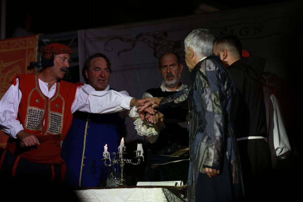 Redatelj predstave i ove je godine bio Robert Kurbaša, producent Luka Perković, a naslovne uloge su tumačili: Zorzi Balbi (Bobo Delonga), fra Pavao Vučković (fra Šimun Markulin), G. Manzecca (Damir Alebić), don Ivan Filipović (Bože Pavić), Mustafa-paša Ćelić (Marko Duvnjak), arambaša Mate Žanko (Sašo Miletić) i drugi. Sudjelovale su i udruge i društva KUD Cetina, Udruga rerara i guslara Otok, Udruga za očuvanje baštine Cetinskog kraja, Kliški uskoci, Konjički klub Alkar, Kulturna udruga Marko Marulić, Plesni studio Split i članovi HGSS-a.