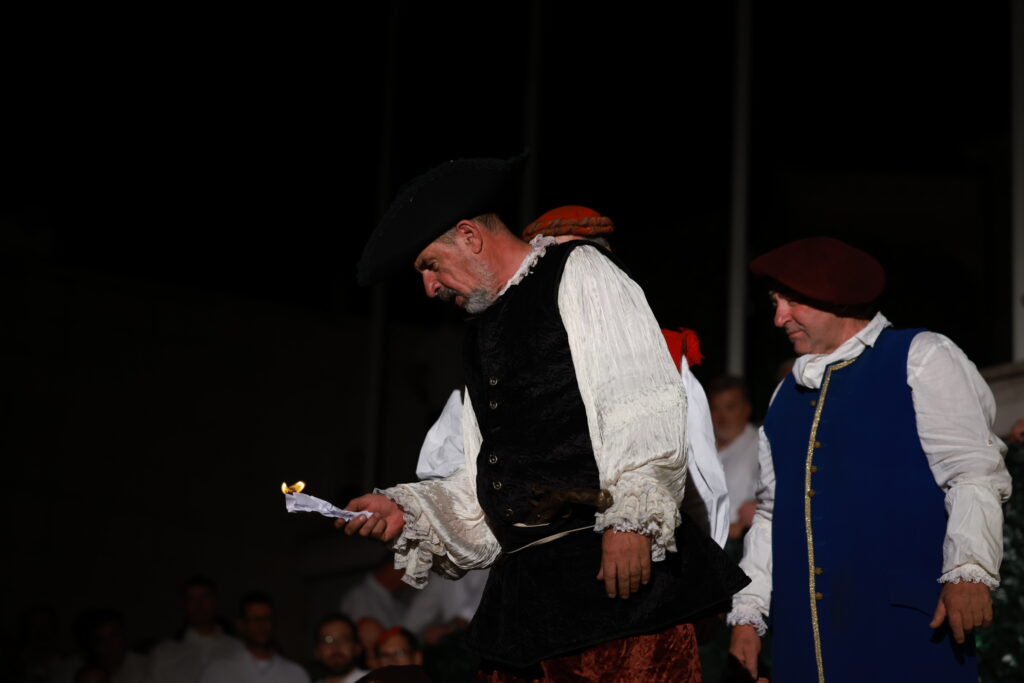 U večeri četvrtka, Sinj se pretvorio u grad napadnut od strane Osmanlije kojeg je branila tek šačica branitelja naspram mnogostruko veće vojske neprijatelja. U povijesnom, scenskom i glazbenom spektaklu “Opsada Sinja 1715.”, napravljenom prema dramskom predlošku prof. Velimira Borkovića, a koji se održava već 19 godina, tursko zauzimanje grada odvijalo se na sinjskoj Pijaci kada Osmanlije u silovitom napadu osvajaju sinjsku varoš, pale crkvu i odvode narod u roblje. Radnja se potom preselila u Alkarske dvore u kojima su pregovore o obrani vodile sinjske vođe, a plan osvajanja izrekao serasker Mehmed paša Ćelić. Sinjani su, kojima je predsjedao Zorzi Balbi, poslije žestoke rasprave konačno odlučili da se grad ne preda i da će ga braniti do posljednje kapi krvi. Svi časnici organiziraju obranu, a vojnici hrabro odbijaju neprijateljske juriše. Konačno, u noći pred blagdan Uznesenja Marijina, turska se vojska povlači i Sinj je obranjen.