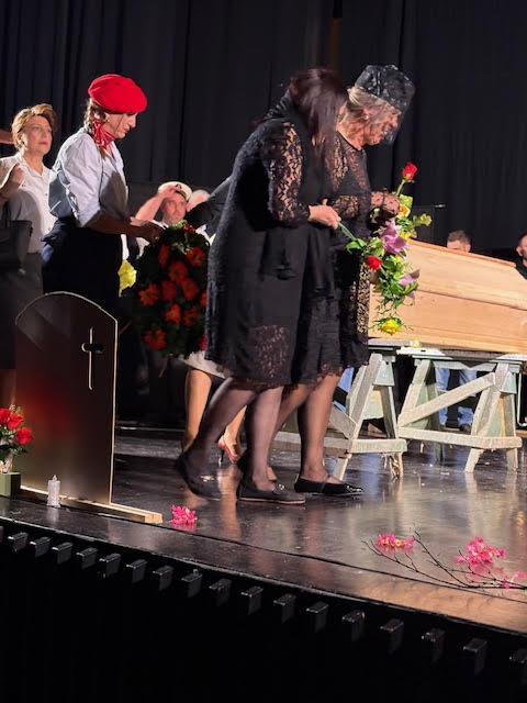 Brojni ansambl kazališta iz Supetra još je jednom pokazao zašto ih publika uvijek rado gleda, a večer su dodatno obogatili gosti iznenađenja – članovi Limene glazbe Brassčuta – Pučišća, koji su se simbolično “pojavili na pogrebu” i zasvirali.