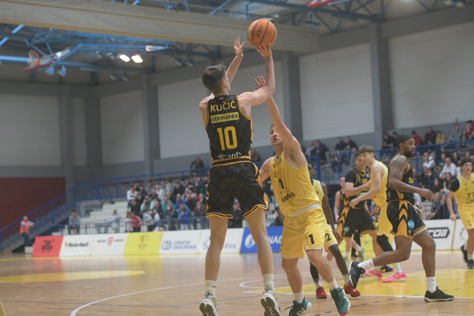 Najveću prednost Žuti su imali u 29. minuti (66:37, plus 29)… U takvim okolnostima Slaven Rimac je minutažu ravnopravno rasporedio na deset igrača. Od Mate Kalajžića (15:57) do Lovre Runjića (23:50) stisnula su se ostala osmorica.
