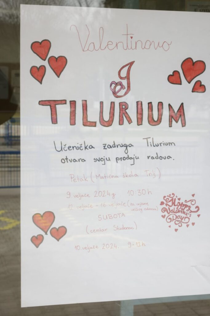 Učenička zadruga Tilurium osnovana je u listopadu prošle godine i u nju su uključeni učenici viših i nižih razreda, kao i učitelji. Prodajna izložba koju su organizirali povodom Valentinova prva je njihova prodajna izložba.