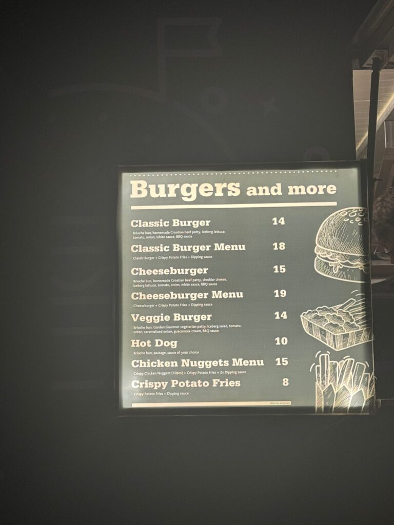 Cijene hrane na Ultri također nisu nimalo povoljne. Pileći nuggetsi i burgeri koštaju po 15 eura, dok je hot dog nešto jeftiniji, ali i dalje visokih 10 eura. Pomfrit košta osam eura. Za vegetarijance, cijene vege burgera i woka kreću se oko 14 eura.