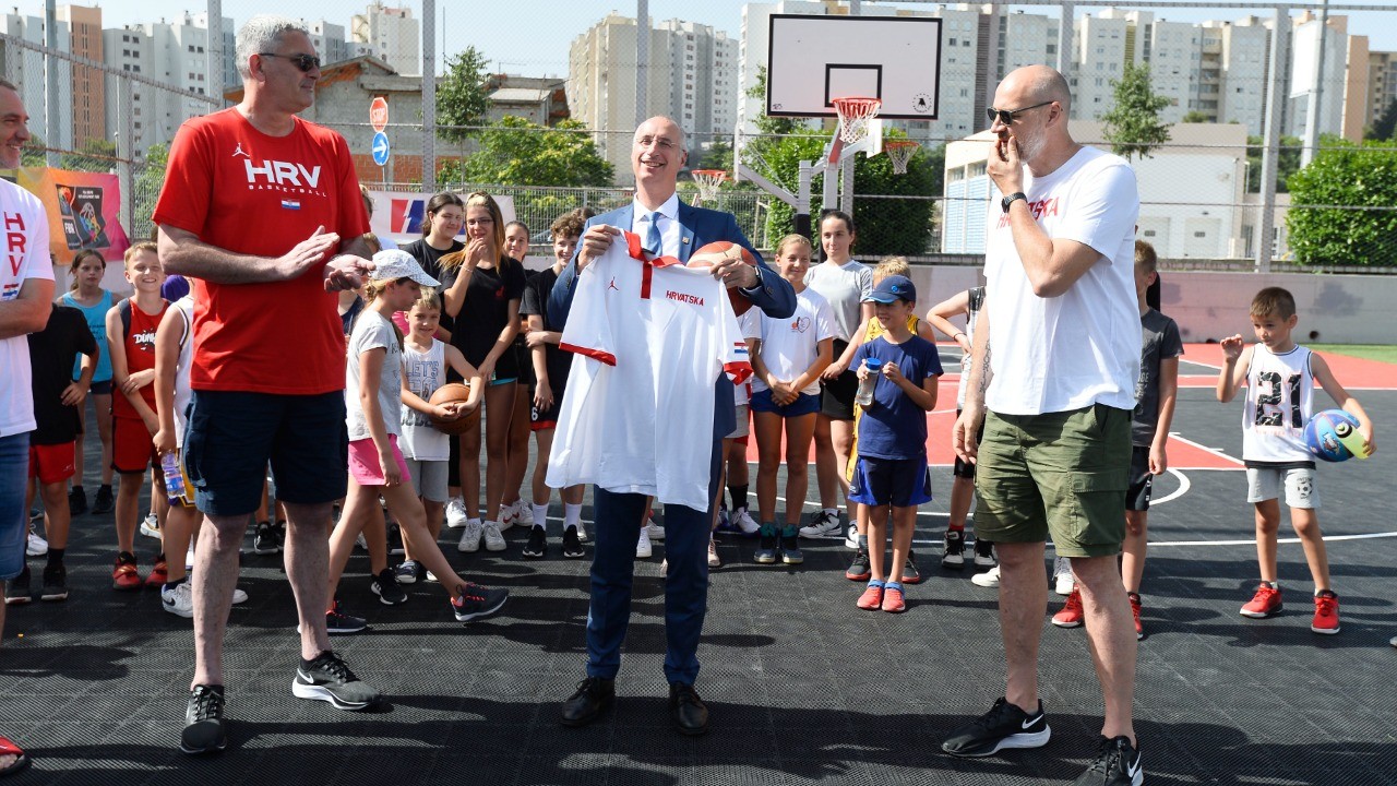 Djeca su već od 8 sati isprobala novo zdanje terena, a nišanske sprave provjerio je i Ivica Puljak, splitski gradonačelnik koji je u mladosti baš trenirao košarku.