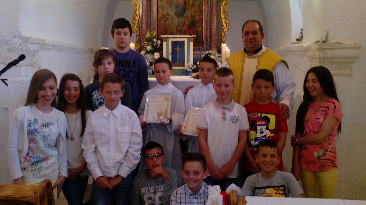– Ove smo godine pričestili dvoje djece iz Čačvine, Andreu Bilonić koja je drugo dijete u osmeročlanoj obitelji, te Ivana Žapera, treće dijete u obitelji. Zanimljiva je to priča jer tri brata Žaper s tri nevjeste i djecom žive u istoj kući, odlično se slažu, a kako su i Bilonići i Žaperi iz Čačvine, krasne obitelji zaista, odlučio sam ih počastiti i Prvu pričest podijeliti u crkvi Svih Svetih u Čačvini. Ona je do 1927. godine bila župna crkva, a potom je u Vrpolju izgrađena nova, crkva Presvetog Srca Isusova – kazao nam je don Josip Bečić koji je Andrei i Ivanu podijelio sakrament.