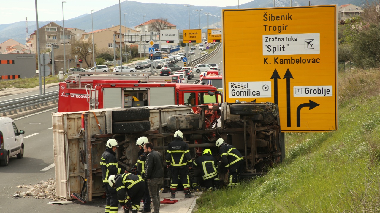 Prometna nesreća u Kaštel Gomilici, prevrnuo se teretni kamion sa šljunkom