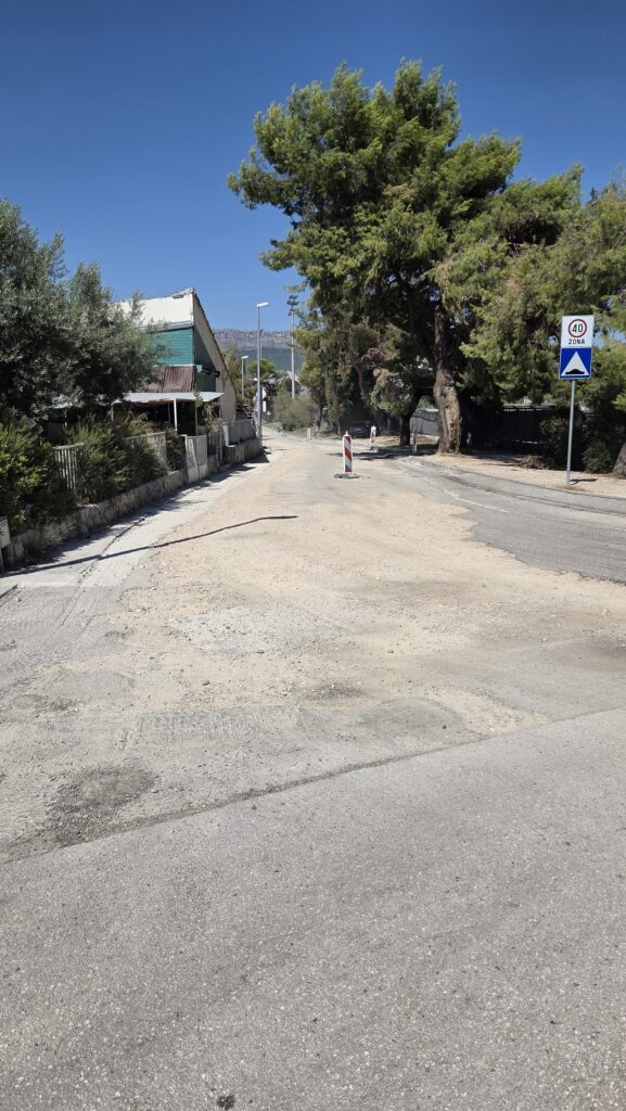 Sanira se 330 metara ceste u oba smjera te se nadograđuje sustav oborinske odvodnje. Navedeni radovi pod izvođačem Cestara će biti dovršeni sljedeći tjedan, prije Hajdukove prve Europske utakmice. Postavljena je i privremena prometna regulacija prometa te molimo građane za strpljenje dok se sve ne realizira i asfaltira – kazao nam je predsjednik kotara Spinut, Luka Kovač Levantin.