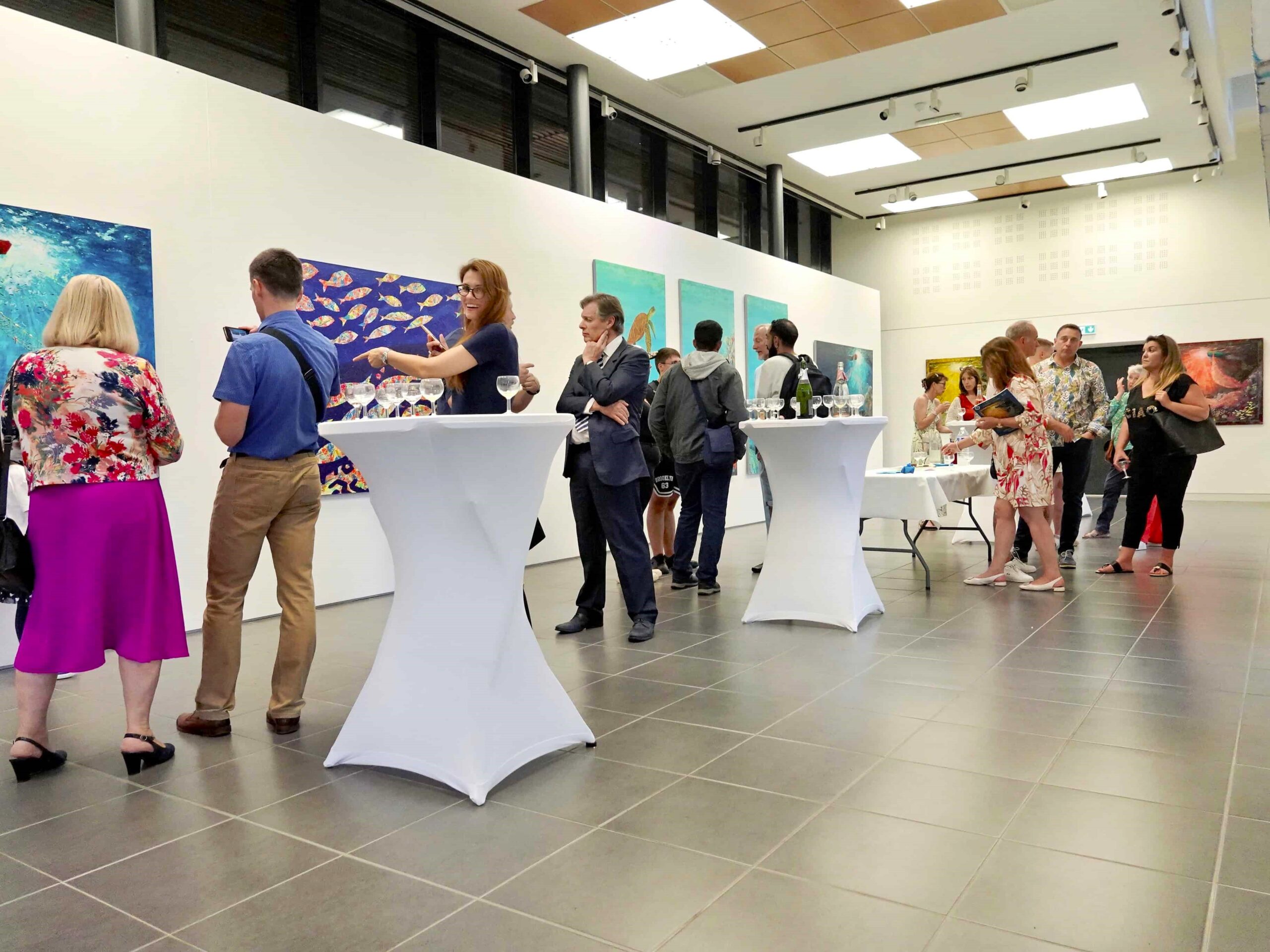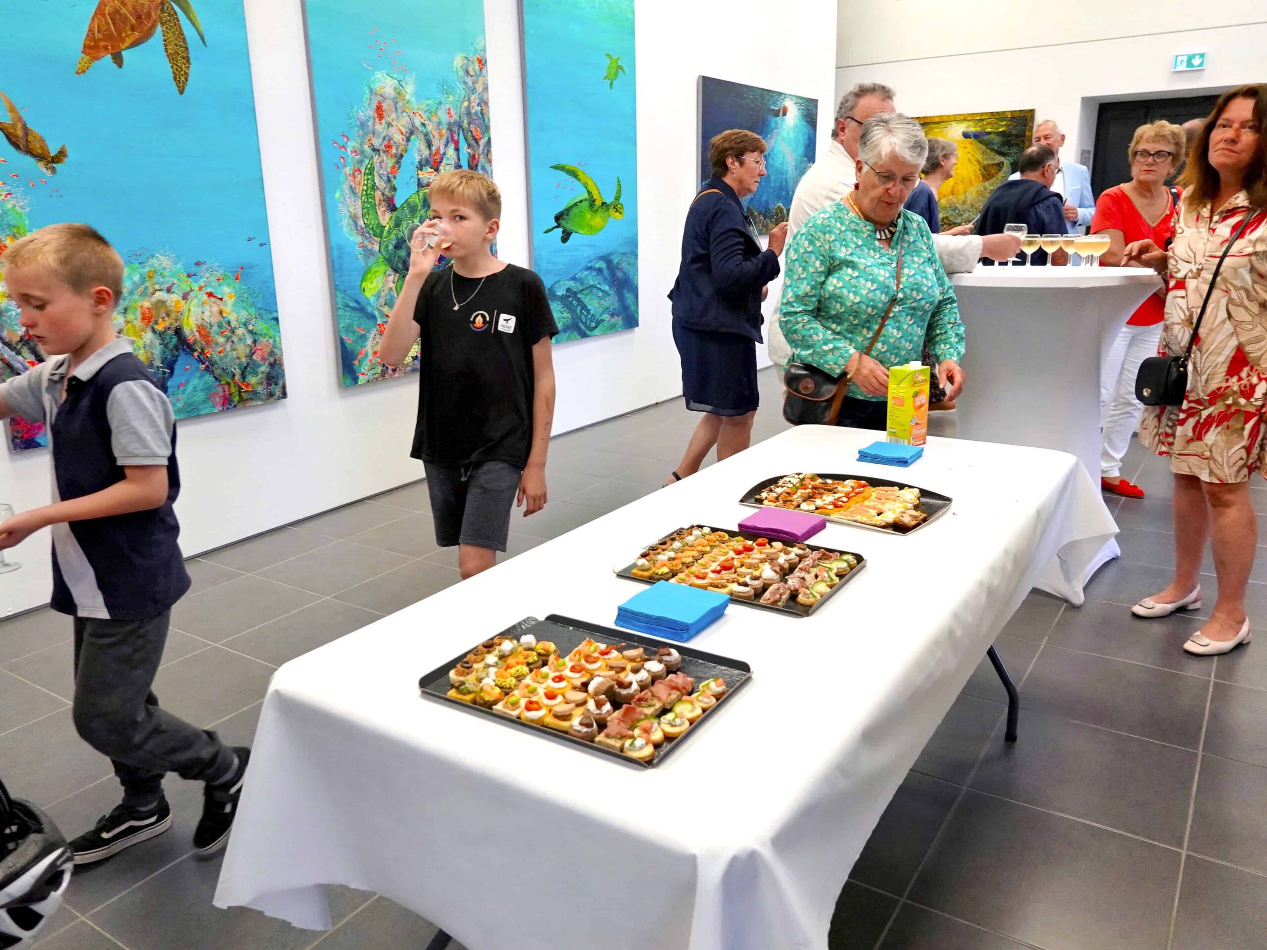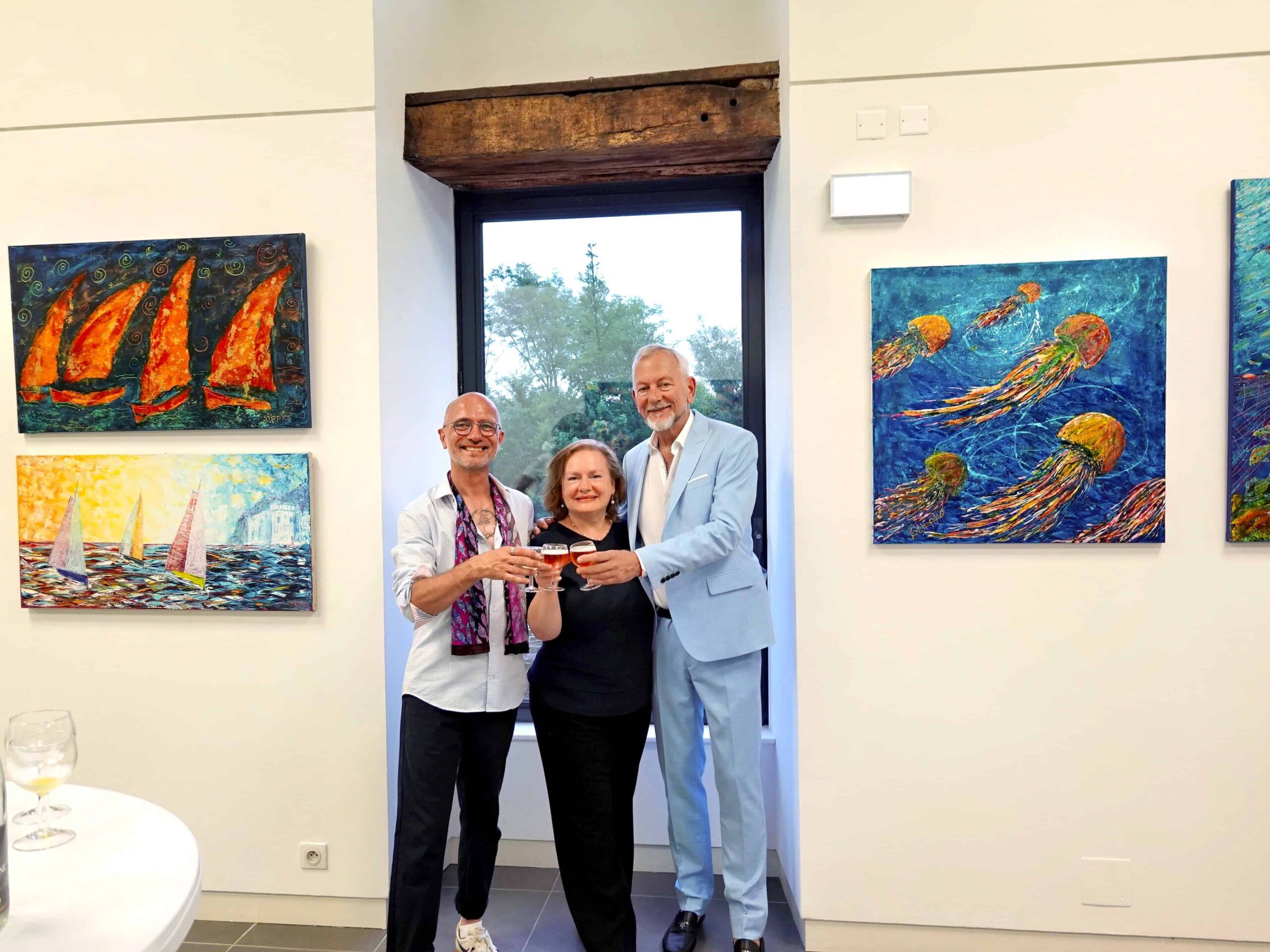 Vernissageu je nazočio je veliki broja uzvanika rukovodstva Grada Le Blanca, pokrajine Centre-Val Loire i Ministarstva kulture Francuske. Iako je bio najavljen pljusak palo je tek nekoliko kapljica kiše te se domjenak nakon protokolarne ceremonije otvorenja ipak mogao održati na terasi Galerije sa koje se pruža divan pogled na rijeku Creuse na čijoj obali je sagrađen Moulin de la Filature-Ville du Blanc. Organizacijski nositelj projekta je gradonačenik Le Blanca GospodinGilles Lherpinière, uz asistenciju Gospođe Nathalie Corbeau pomoćnice delegirane za kulturu i kustosa izložbe Gospodina Pascala Szkolnika, scenografa koji je ujedno i voditelj kulturnog programa u Moulin de la Filature-Ville du Blanc.