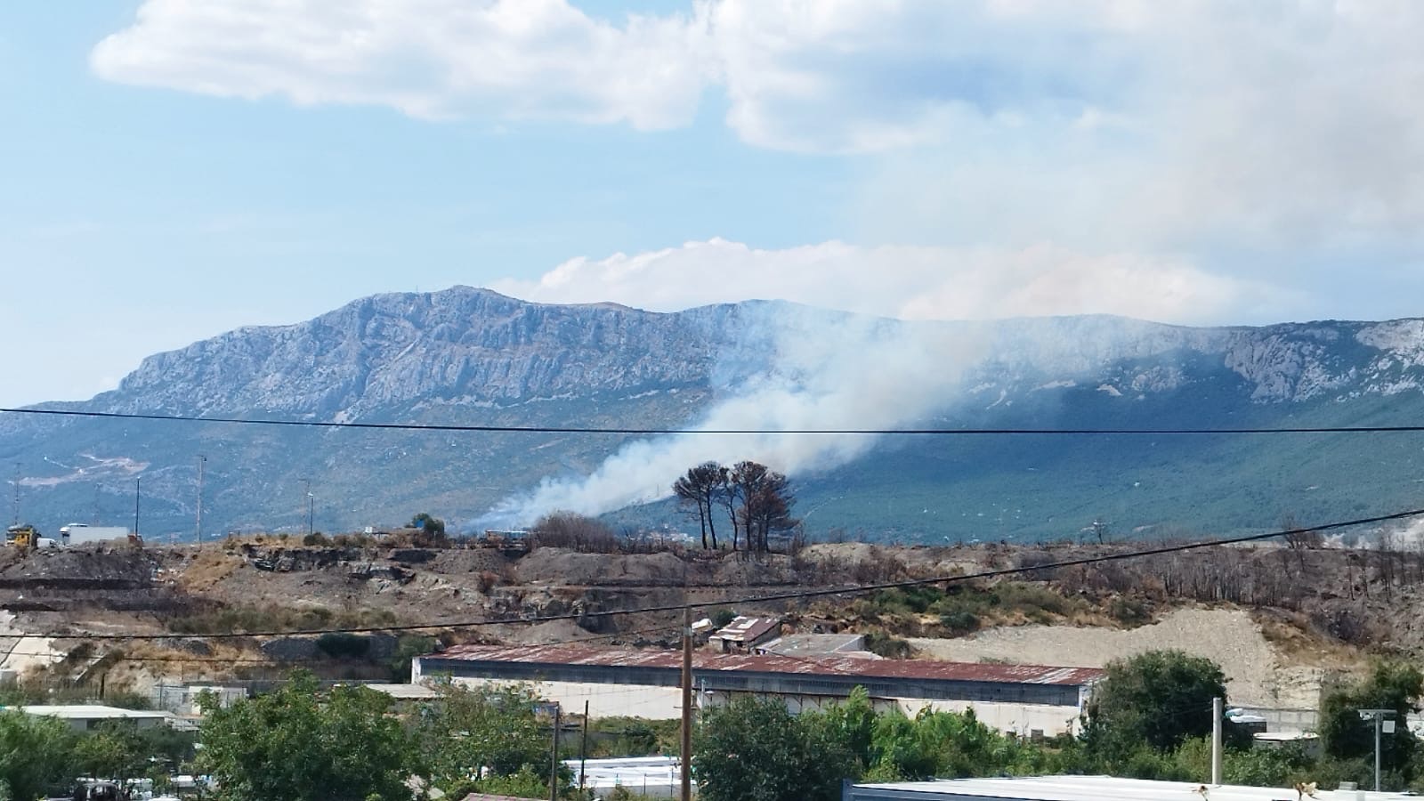 Nakoliko sati nakon izbijanja požara u brdskom području iznad Kaštel Sućurca, stanje na terenu je dosta povoljnije. Iako se i dalje mjestimično pojavljuje otvoreni plamen, vatrena linija je sada znatno manja, a glavnina požara je pod nadzorom vatrogasnih snaga koje neprekidno djeluju na terenu.