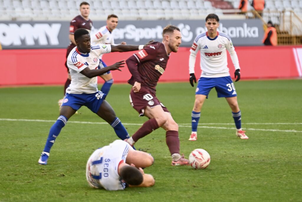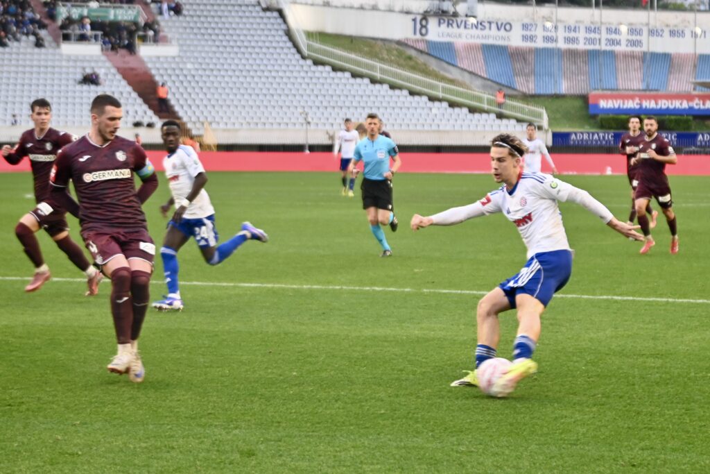 45 +1 – Nova stopostotna šansa. Almena puca, ali Kumar skida s crte. Kolićeva vrata još su čista iako je Hajduk stvorio velik broj prilika.