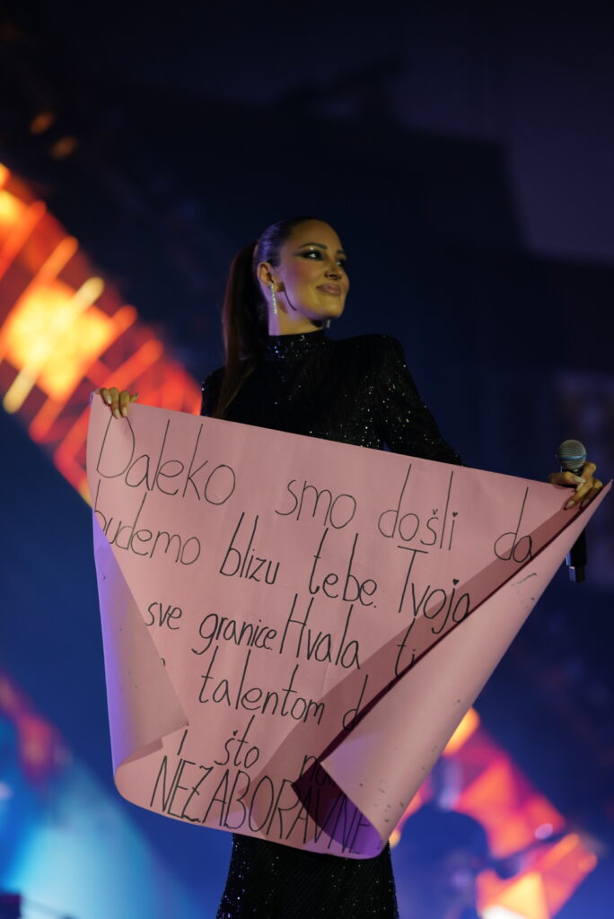 Prava magija odvijala se tijekom emotivne balade “Devet života”. Popularna Aleksandra ispred sebe je imala sliku iz snova kad su fanovi popalili bljeskalice i od dvorane napravili zvjezdano nebo.