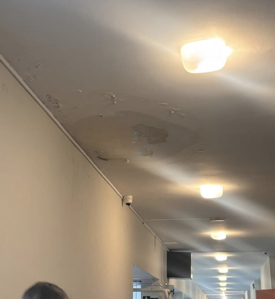 U Osnovnoj školi Meje u Splitu danas su zabilježeni novi (stari) problemi s prokišnjavanjem, a prema navodima čitatelja, na više mjesta u zgradi voda je prodirala kroz stropove, pri čemu je na jednoj lokaciji otpao i dio stropne obloge.