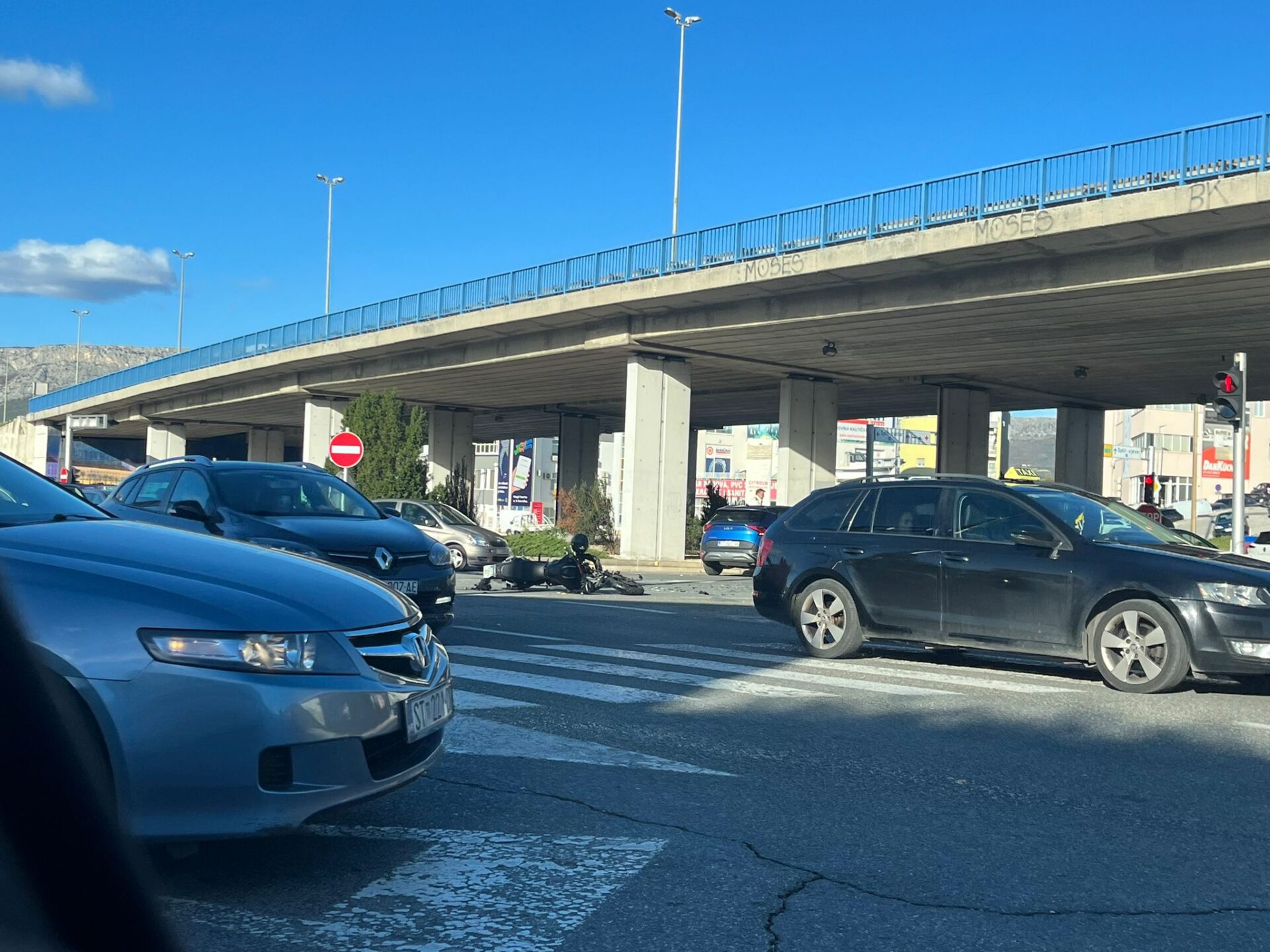 Danas oko 13.05 sati na raskrižju Poljičke ulice i Ulice Zbora narodne garde došlo je do prometne nesreće. Sudarili su se motocikl i automobil. Materijalna šteta je velika, a prema prvim informacijama jedna osoba je ozlijeđena.