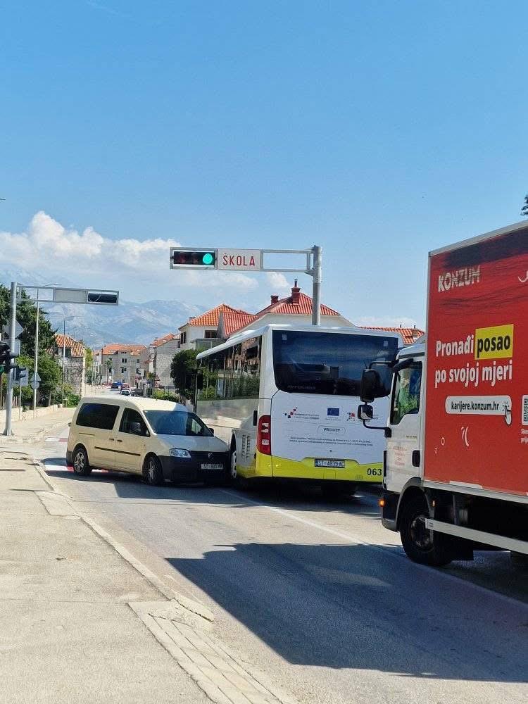 Prva se nesreća dogodila oko 13:20 sati u Kaštel Sućurcu, na križanju Ceste dr. Franje Tuđmana i Ulice don Ante Rubignonia. Sudarili su se autobus i dva automobila, a na sreću, nitko nije ozlijeđen.