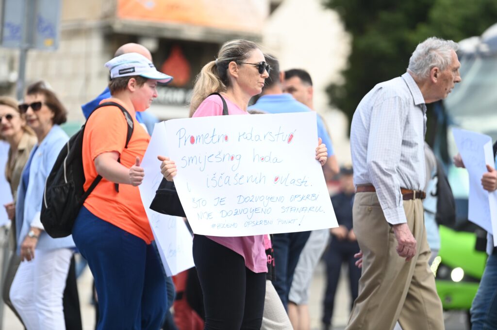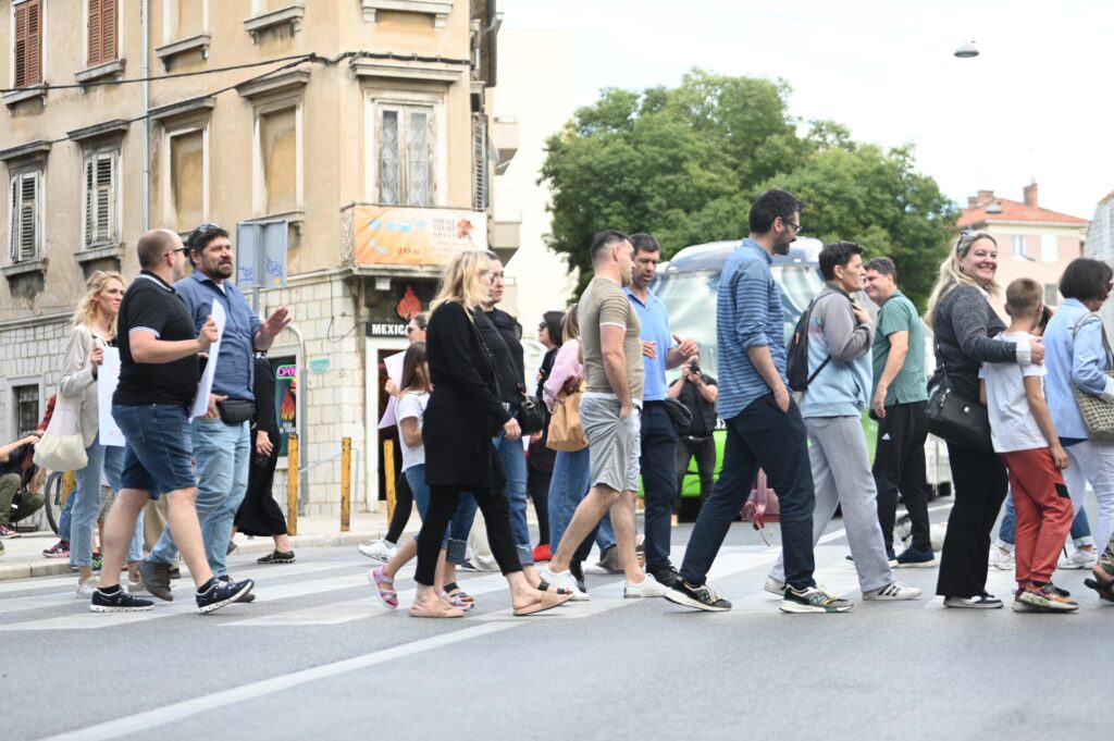 U srijedu popodne stanovnici Stare gradske jezgre Splita (SGJ) održali su prosvjed na pješačkom prijelazu Zagrebačke ulice, na samom uglu Strossmayerova parka (Đardin). Simboličnim prelaskom zebre, na pola sata blokirali su promet u znak građanskog bunta protiv, kako navode, dugogodišnjeg ignoriranja i neadekvatnog tretmana od strane gradskih vlasti.