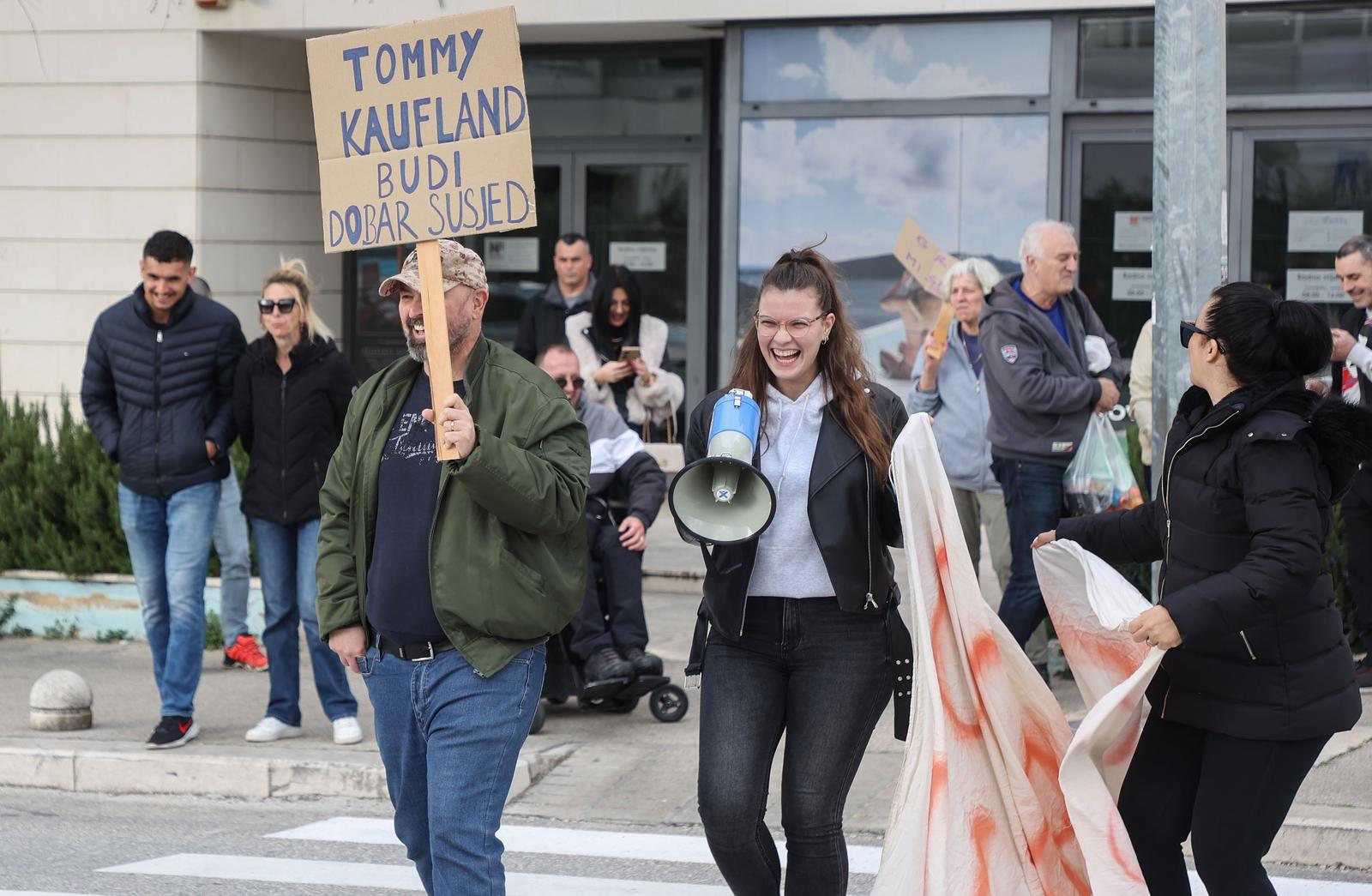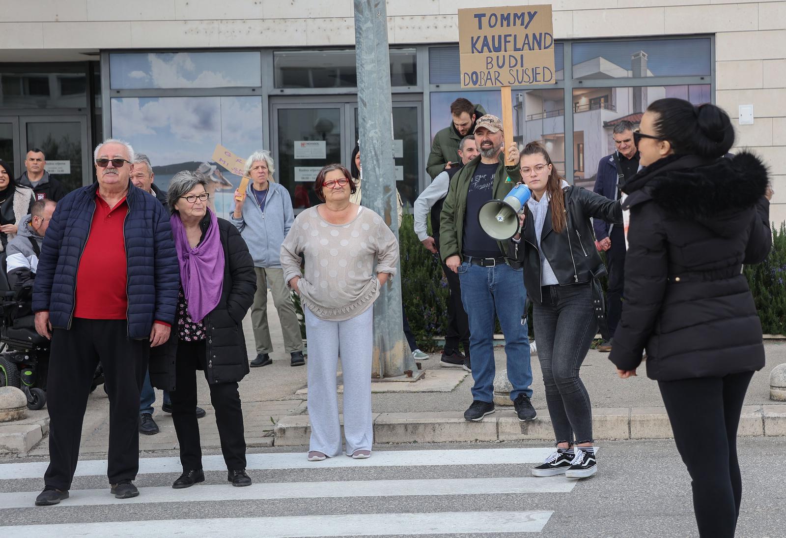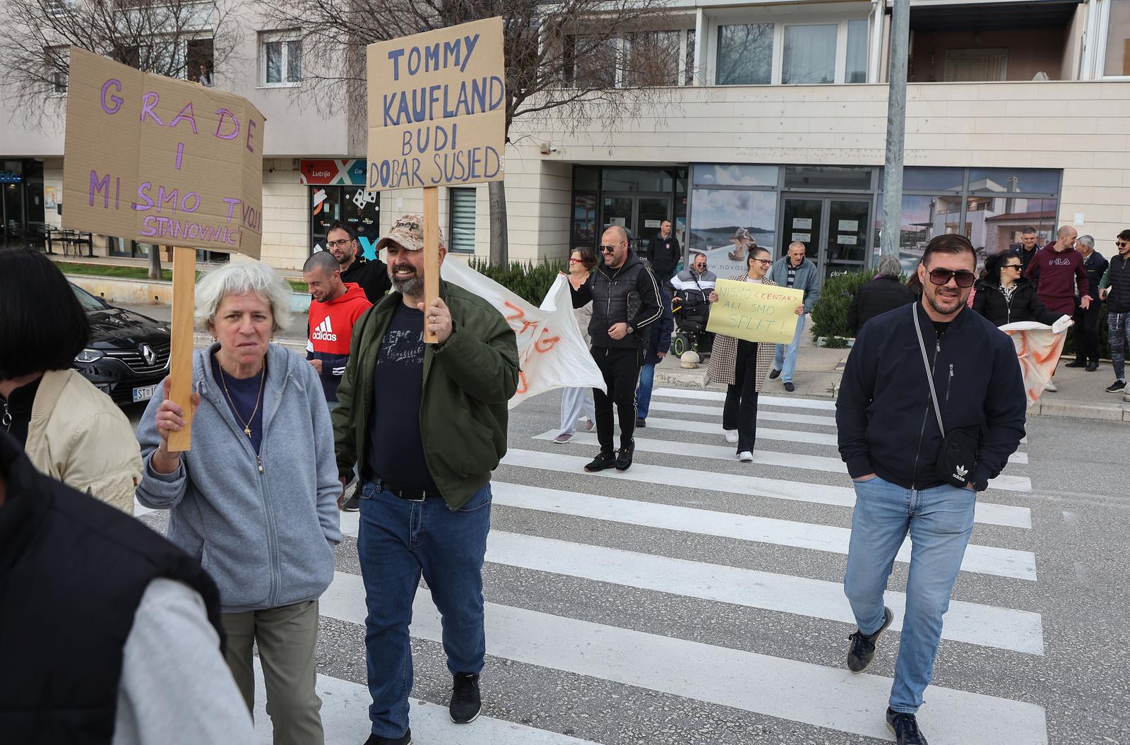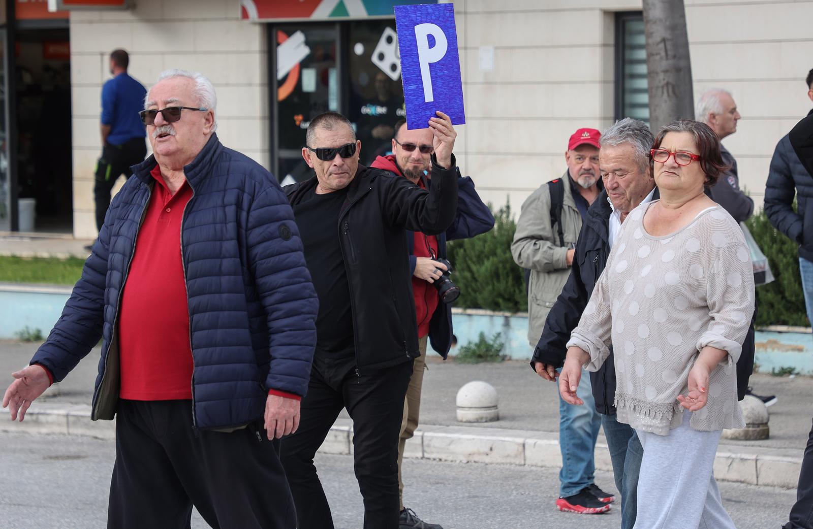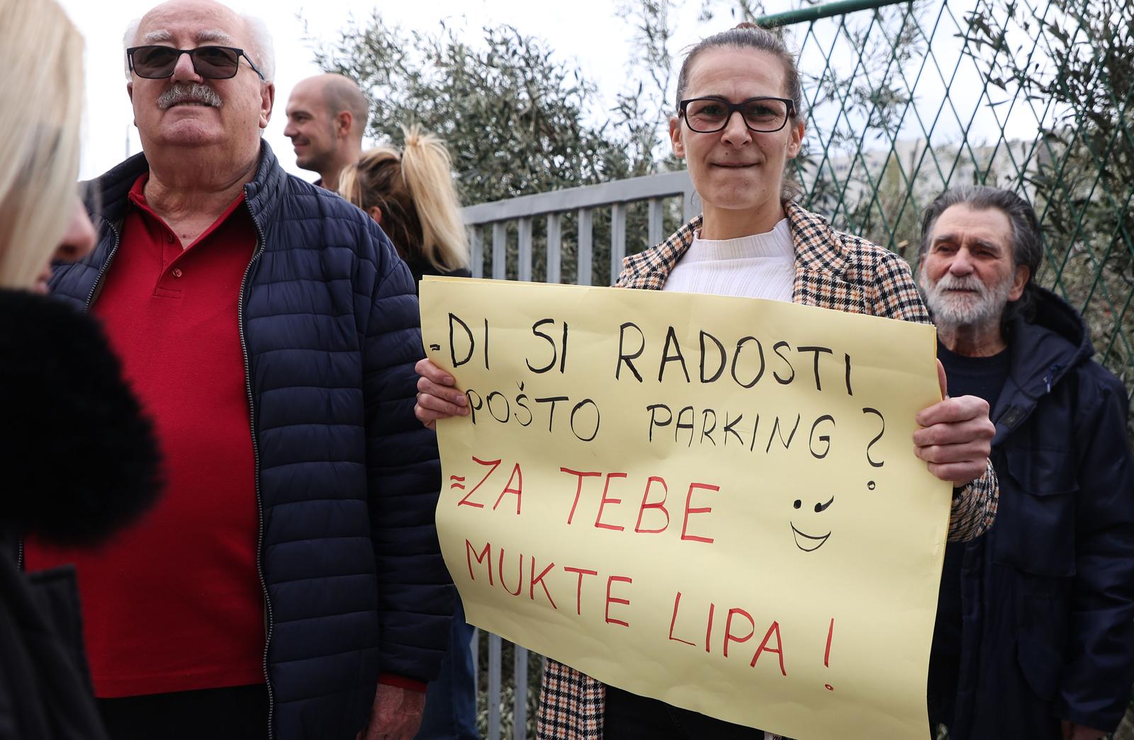 - 12.02.2024., Split – Prosvjed mjestana splitskog kvarta Ravne Njive zbog problema s parkingom. Obliznji trgovacki centri zabranili su parkiranje za stanovnike postavljanjem rampi. Photo: Ivana Ivanovic/PIXSELL