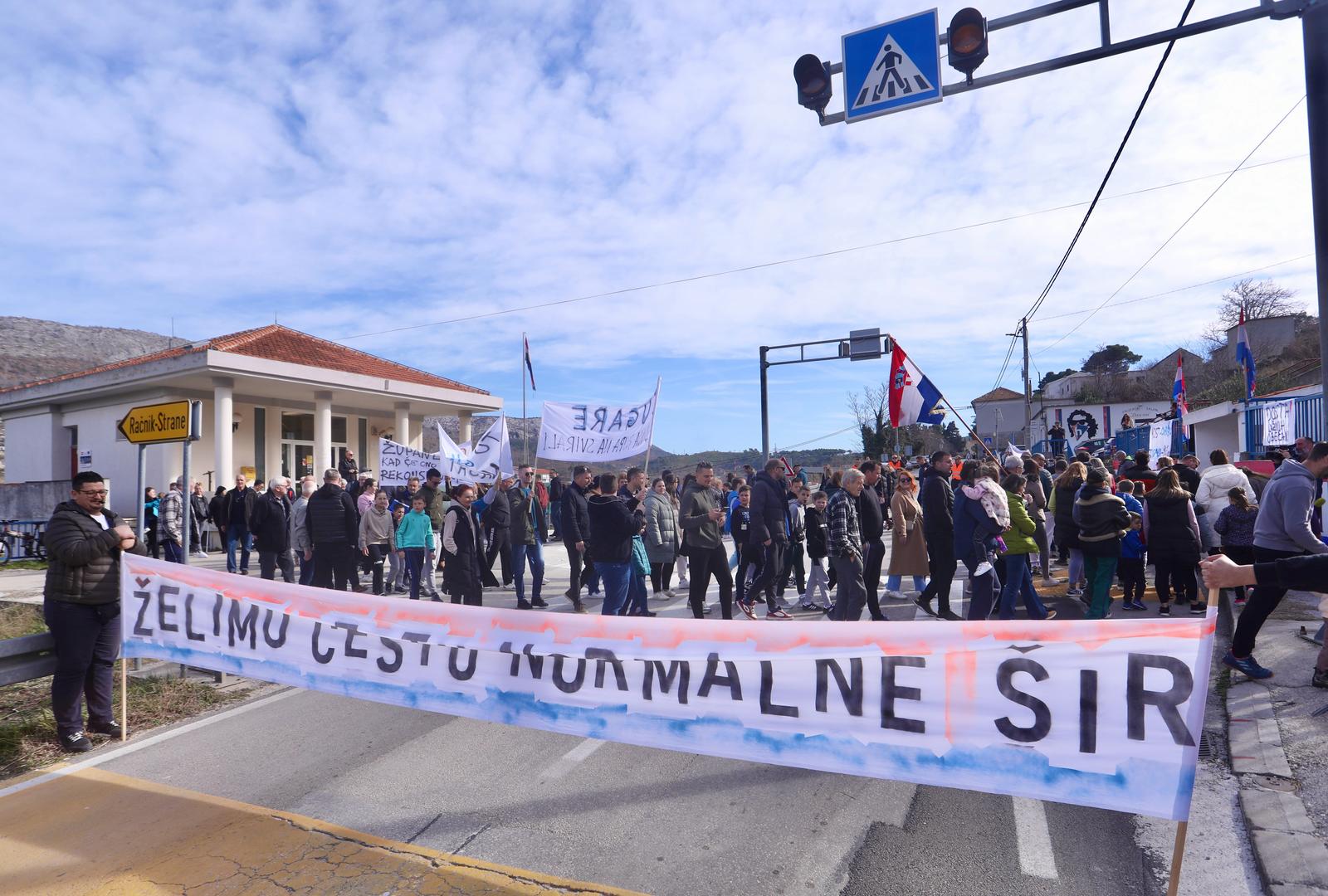 Poruke poput “Dosta je lažnih obećanja”, “Župane, kad će rekonstrukcija”, te “2018. – ima jedna duga cesta. 2024. – nema je” istaknute su na transparentima više stotina okupljenih prosvjednika, koji su privremeno blokirali prometnicu. Mještani izražavaju svoje nezadovoljstvo te traže konkretne korake i hitnu akciju u rješavanju infrastrukturnih problema koji ih muče već duže vrijeme.