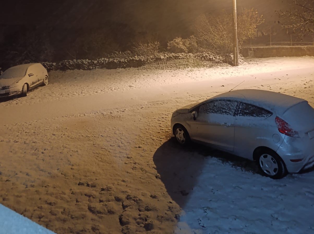 Prvi snijeg, i to u studenom, prekrio je naselja Svib i Studence. Pahulje su brzo prekrile tlo, stvarajući bijeli pokrivač na cesti i oko kuća.