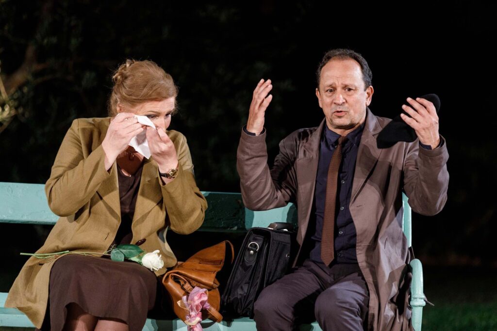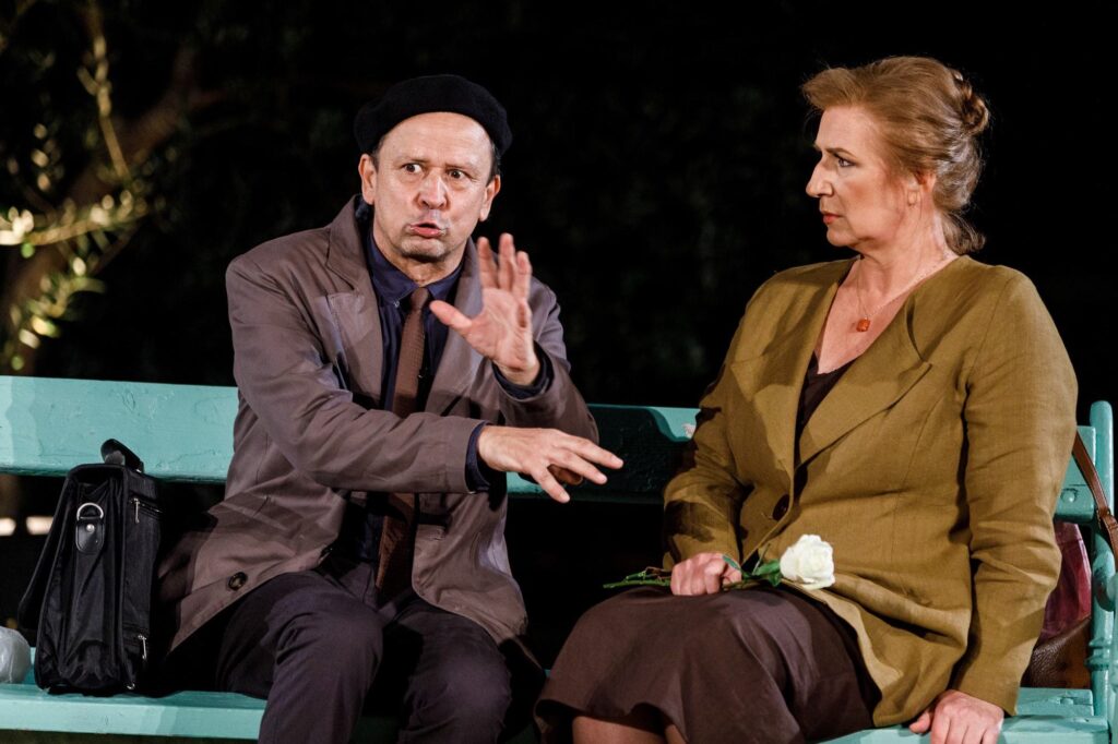 Ova predstava je na površini duhovita, naizgled svakodnevna ljudska priča o zamjeni identiteta i zabavnim nesporazumima koji iz nje proizilaze, i u svojoj je suštini dubinska analiza ljudskih odnosa u suvremenom, otuđenom svijetu i potrebi ljudi za „srodnom dušom“. Iako drama ne pretendira na velike teme, već se bavi sasvim malim ljudskim strahom, strahom od dugo očekivane sreće, njeni dometi su itekako značajni. Pobijediti strah, dati šansu samom sebi, usuditi se napraviti onaj presudan korak ka sreći, ka ispunjenju – blago je koje su sputani strahom ispustili mnogi. Predstavu su režirali Snježana Sinovčić Šiškov i Trpimir Jurkić, koji ujedno nastupaju i u naslovnim ulogama.