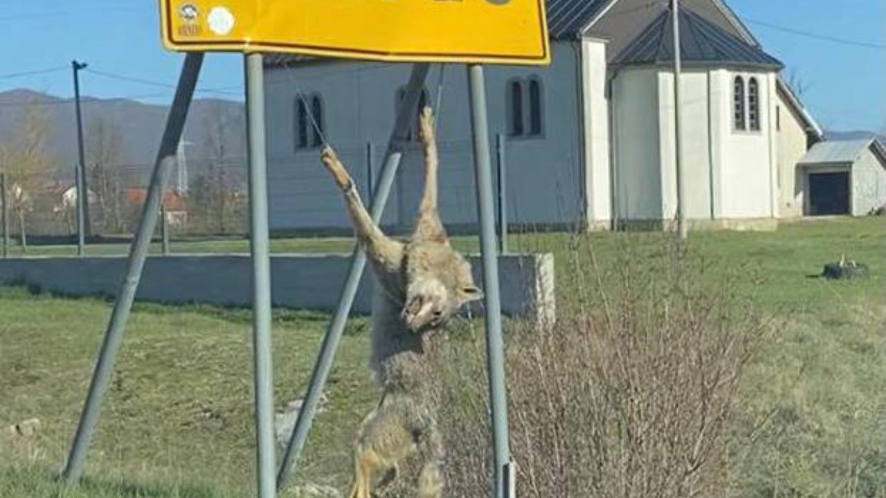 Uznemirujući sadržaj: Netko objesio vuka na tablu u Gračacu