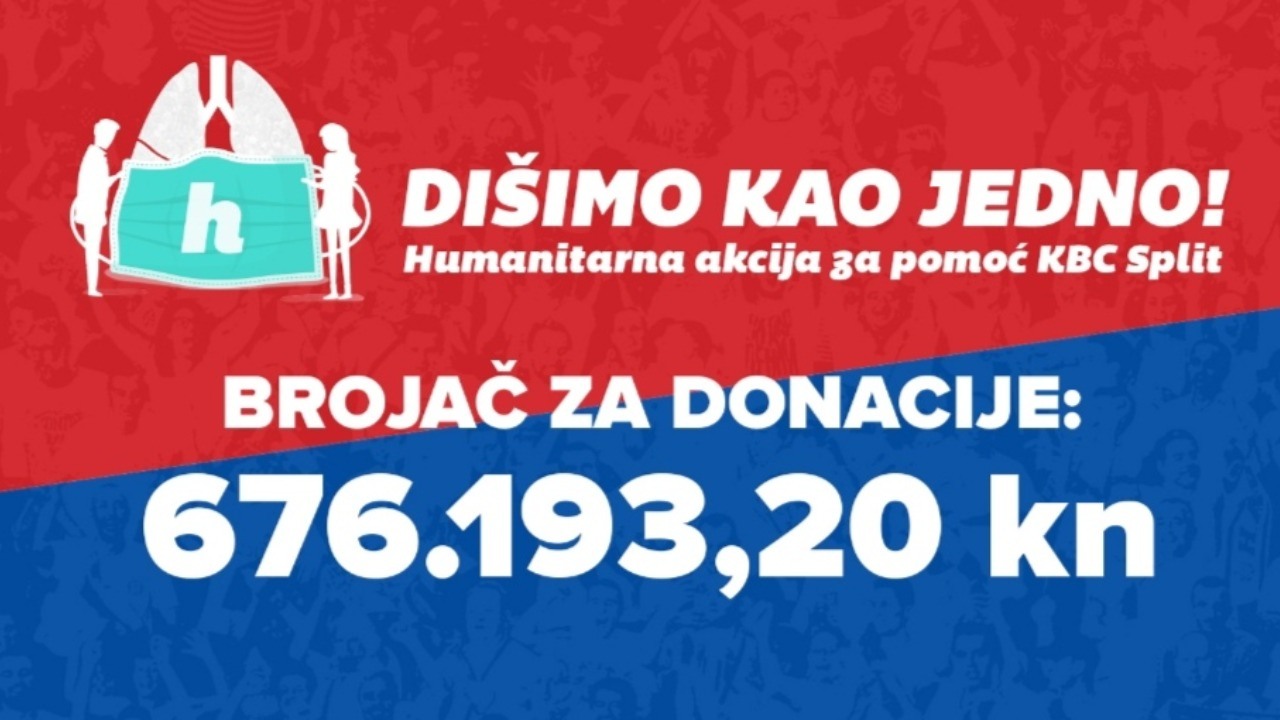Do ponedjeljka 6. travnja u humanitarnoj akciji ”Dišimo kao jedno” koju su organizirali HNK Hajduk i HKNH ”Bilo Srce” za KBC Split prikupljeno je preko 670.000 kuna u drugom dijelu Hajdukove akcije, od čega čak preko 200.000 kuna tijekom proteklog vikenda.
