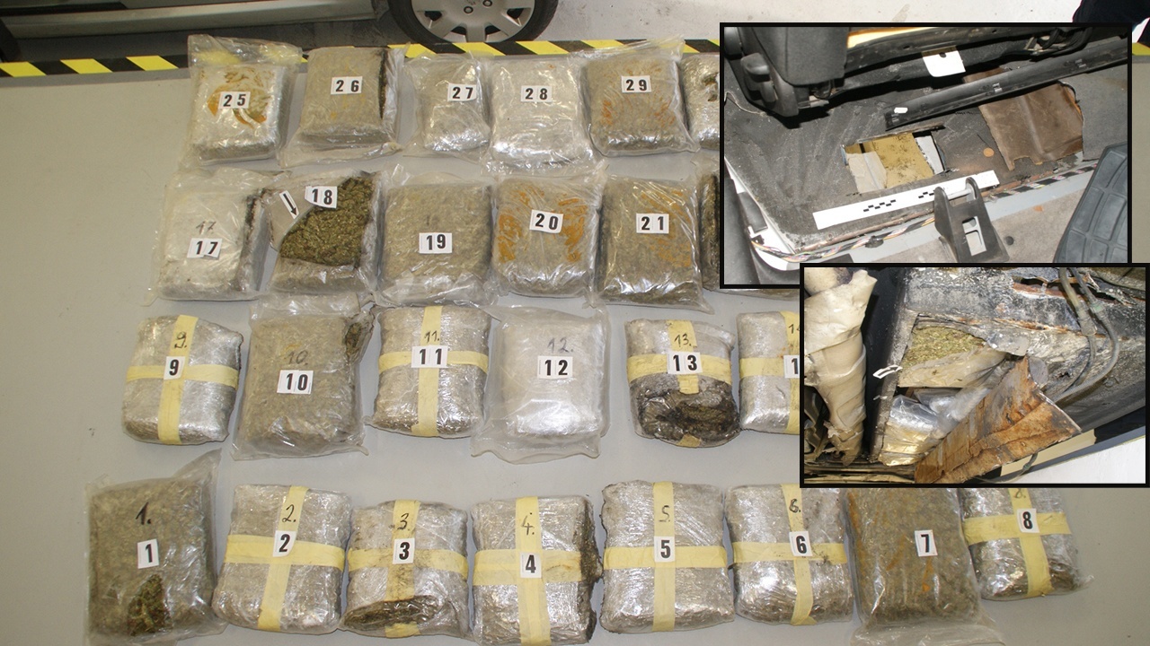 Temeljem naloga Županijskog suda u Dubrovniku obavljena je detaljna pretraga vozila. U posebno izrađenim bunkerima ispod vozačevih i suvozačevih sjedala pronađen je 31 paket s ukupno 29,486 kg marihuane vrijednosti oko 900 tisuća kuna, što bi daljnjom preprodajom doseglo vrijednost od dva milijuna kuna.