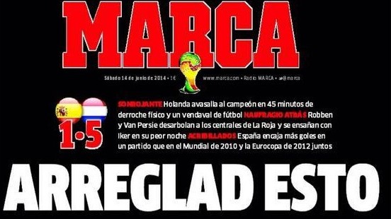 Dan nakon debakla ”furije” protiv Nizozemske (5-1), španjolski su mediji u šoku. Najdalje je otišla madridska Marca koja je izašla ”u crnini”.