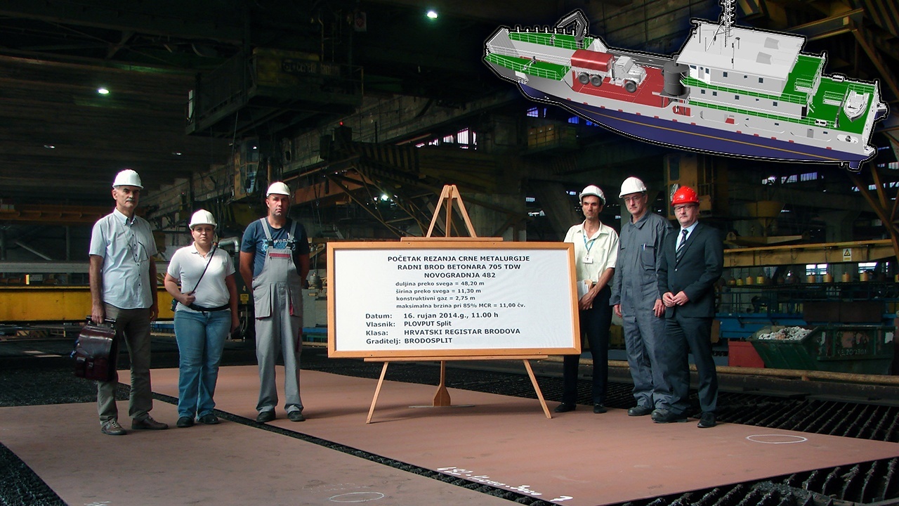 Iz Brodosplita su u utorak poručili da je započela obrada čelika za Novogradnju 482. Radi se o betonari koja se radi za Plovput, koji skrbi o 1054 objekta pomorske signalizacije diljem Jadrana. Brod je dug 48,20 metara, širine 11,30 metara i visine na boku četiri metra, a imat će nosivost 705 tona. Specifičnost broda je što ima vlastitu pramčanu rampu, putem koje neovisno o ukrcaju vode i građevinskog materijala, ulazi i jedan građevinski stroj,kamion, bager ili autodizalica.