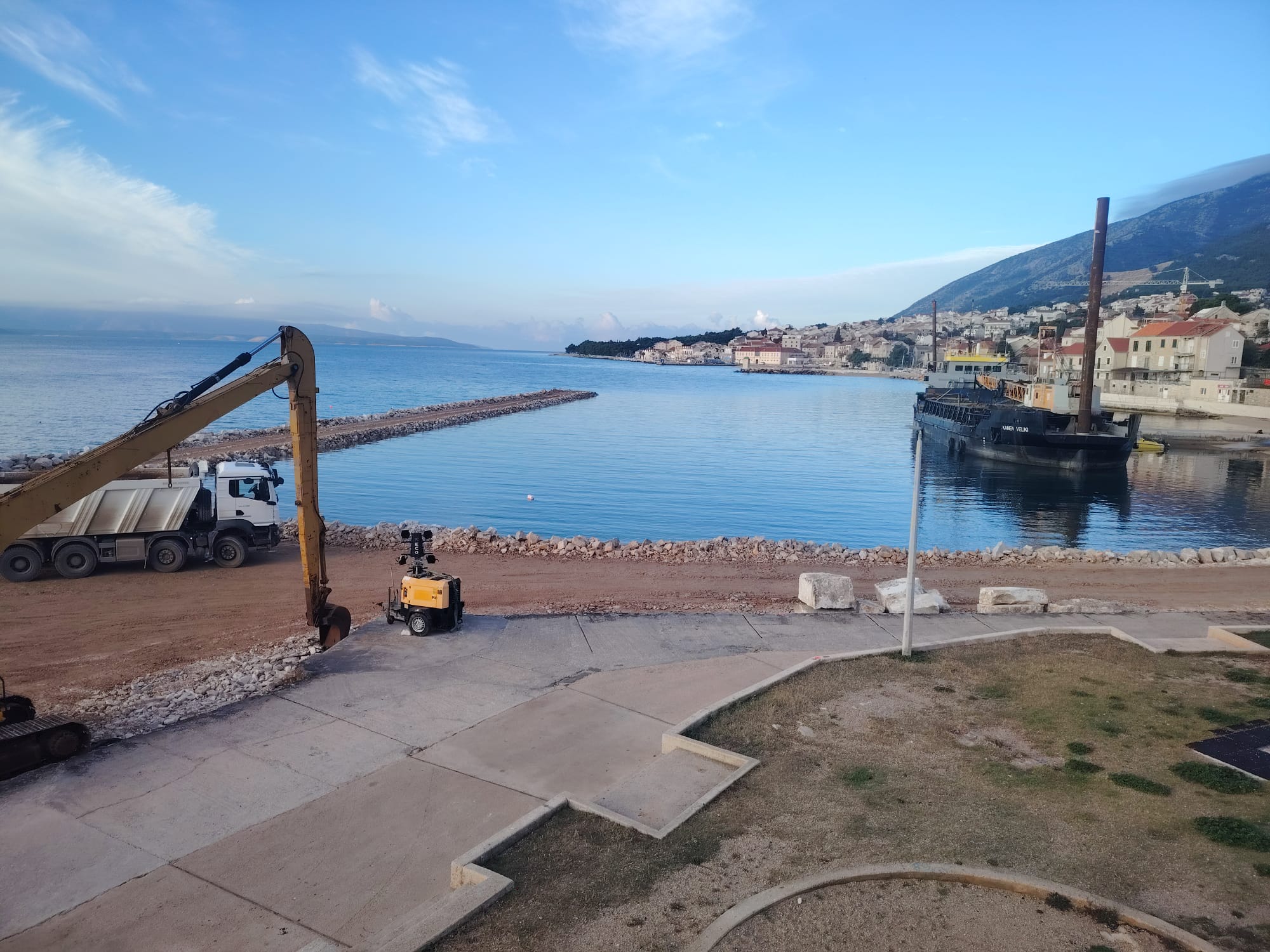 Radovi su započeli u svibnju 2025. te ih izvodi hrvatska tvrtka Texo Molior. Radi se o složenom inženjerskom zahvatu koji obuhvaća izgradnju nove luke istočno od postojeće, uz formiranje dužobalne šetnice koja će povezati obje luke.