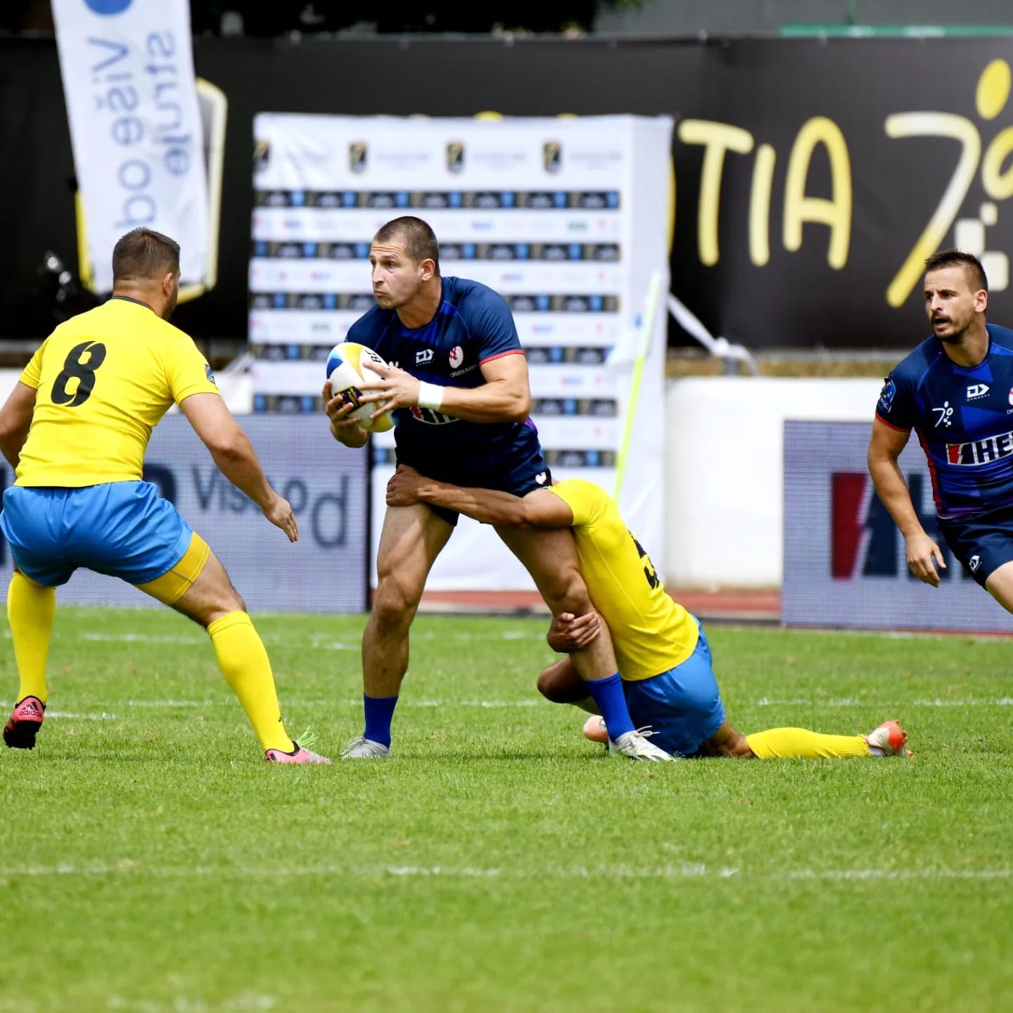 Hrvatski ragbijaši u utakmici za 11. mjesto na prvom turniru Europskog prvenstva u Makarskoj pobijedili Ukrajinu rezultatom 21 – 10 i trijumfom se oprostili od domaće publike. Polaganja su postigli Perić, Rizzi i Svaguša, a sva tri je pretvorio Jurišić.