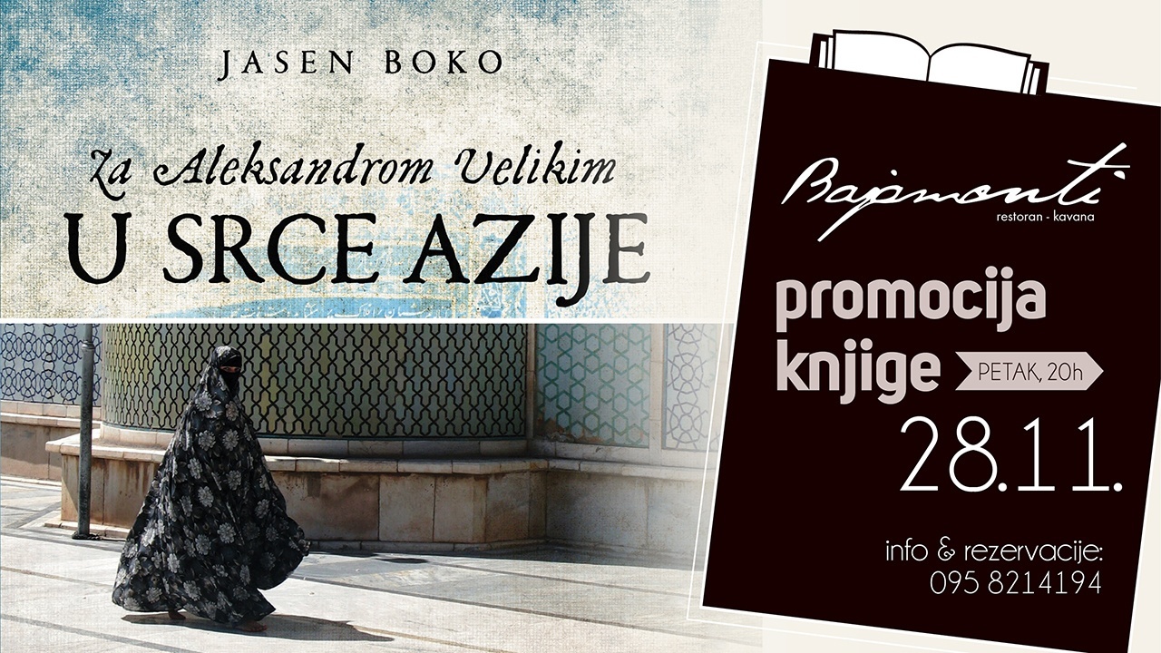 Jasen Boko, splitski dramaturg, novinar, pisac i iznad svega po osobnom opredjeljenju putopisac i avanturist predstavit će gostima Bajamontija svoju novu knjigu “Za Aleksandrom Velikim u srce Azije”. Nakon hvaljenih i uspješnih putopisa “Na putu svile” i “Tragovima Odiseja” Jasen Boko uputio se još jednom na tematsko putovanje u Aziju, u potragu za Aleksandrom Velikim.