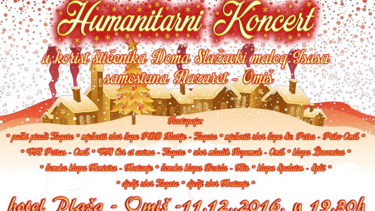 No, evo svake godine, u Omišu se održava Humanitarni koncert – Ususret Božiću za Štićenike doma Služavki malog Isusa Omiš, Samostan Nazaret na Vangradu.