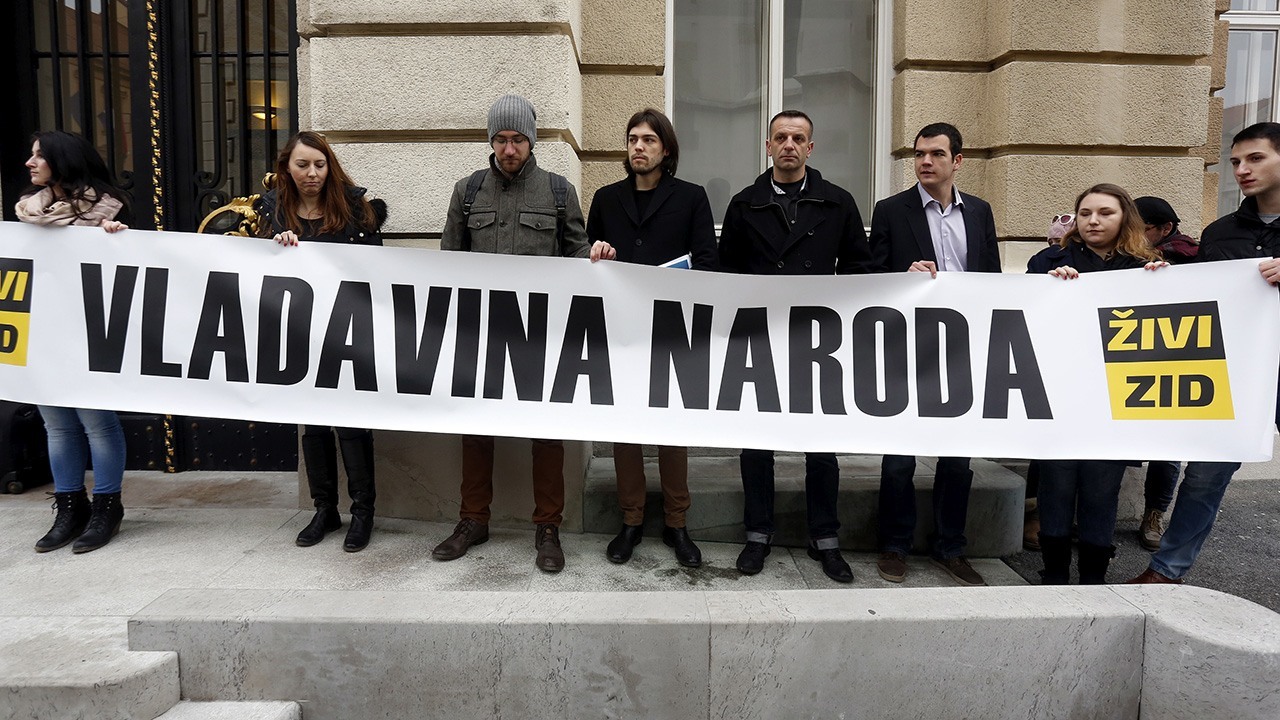 Aktivisti Referendumskog ustanka zastupnike su pred Saborom dočekali s transparentom kojim se upozorava da se novim zakonom “ukida demokracija i prelazi u sustav predstavničke diktature”.