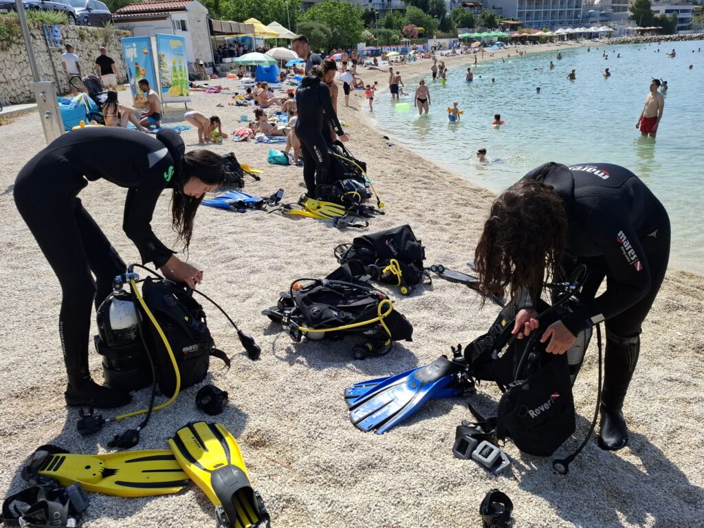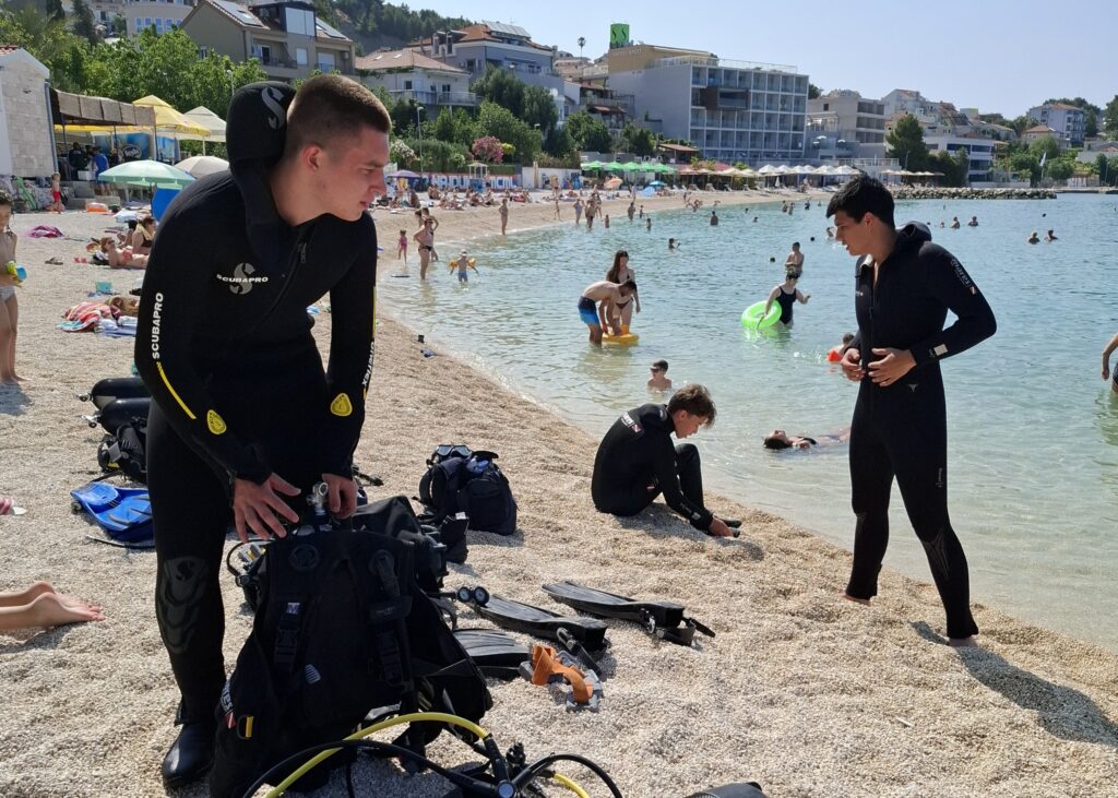 Splitsko-dalmatinska županija prepoznala je ovaj projekt, nagradivši eko-grupu i zainteresirane učenike probnim zaronima te s 10 besplatnih tečajeva ronjenja! Važno je naglasiti kako je projekt doživio iznimno veliki odaziv, s čak 50-ak učenika iz svih smjerova škole koji su se prijavili na tečaj ronjenja. S obzirom na veliki broj zainteresiranih, nakon prvog kruga izbora preko 30 učenica i učenika imalo je uvodno predavanje i probne zarone, što svjedoči o velikom interesu mladih Pomorske škole Split za aktivno sudjelovanje u očuvanju mora. Projekt je uz podršku ravnateljice Mirele Žižić realiziran u suradnji s instruktorom Jozom Rosom iz Ronilačko-ekološkog kluba „Podstrana“ (REK Podstrana). Učenici su, nakon uvodnog predavanja i probnog zarona u bazenu na Poljudu, završili tečaj u REK Podstrana, stekavši licencu za OWD sportsko ronjenje do dubine od 18 metara. Donosimo vam galeriju fotografija sa zvaničnog završetka projekta i podsjetnik na predavanje i probne zarone u bazenu. Svakako je lijepo znati da su među novim roniocima škole iznimno svestrane učenice i učenici koji će se nastaviti školovati na Sveučilišnom odjelu za studije mora i Pomorskom fakultetu. U grupi su podvodni ribolovci s dozvolom, vaterpolisti i plivači, nositelj priznanja Hrvatskog olimpijskog sporta za uspjehe u jedrenju i polaznica solo pjevanja koje pohađa u Glazbenoj školi Josipa Hatzea.