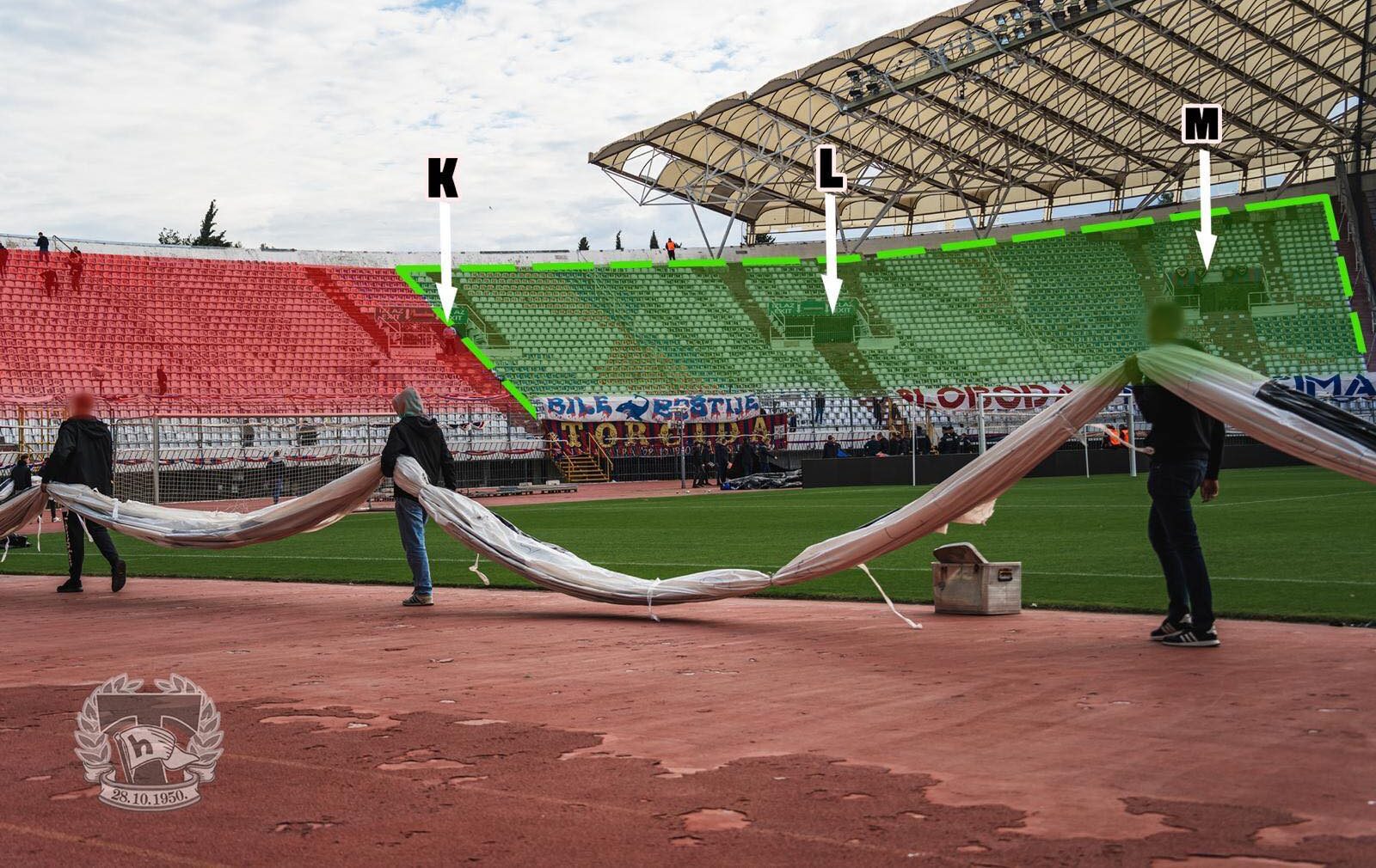 –Na sutrašnjoj utakmici s Goricom obilježit ćemo 10 godina od tragičnog odlaska jednog od naših najvećih, Žana Ojdanića. Povodom toga, organiziramo prodaju šalova prije same utakmice na ulazima Tribine Sjever. Šalovi će se prodavati isključivo na ulazima K, L i M, a cijena šala bit će 10€. Apeliramo na sve koji kupe šal da s istim stanu na sjeveroistok (zeleno područje označeno na slici). Na tom području tribine će se na početku utakmice izvesti koreografija za koju su šalovi nužni kako bi izvedba bila uspješna. Za koreografiju će se koristiti isključivo šalovi koji će se prodavati sutra te nikakvi drugi ne dolaze u obzir. Ovo je prilika da i ubuduće na tribini sjever prevladaju službeni šalovi grupe i Hajduka, a ne sela, kvartova, ekipa i ‘pazarski’. Samim time ćemo dignuti šalijade na veću razinu.