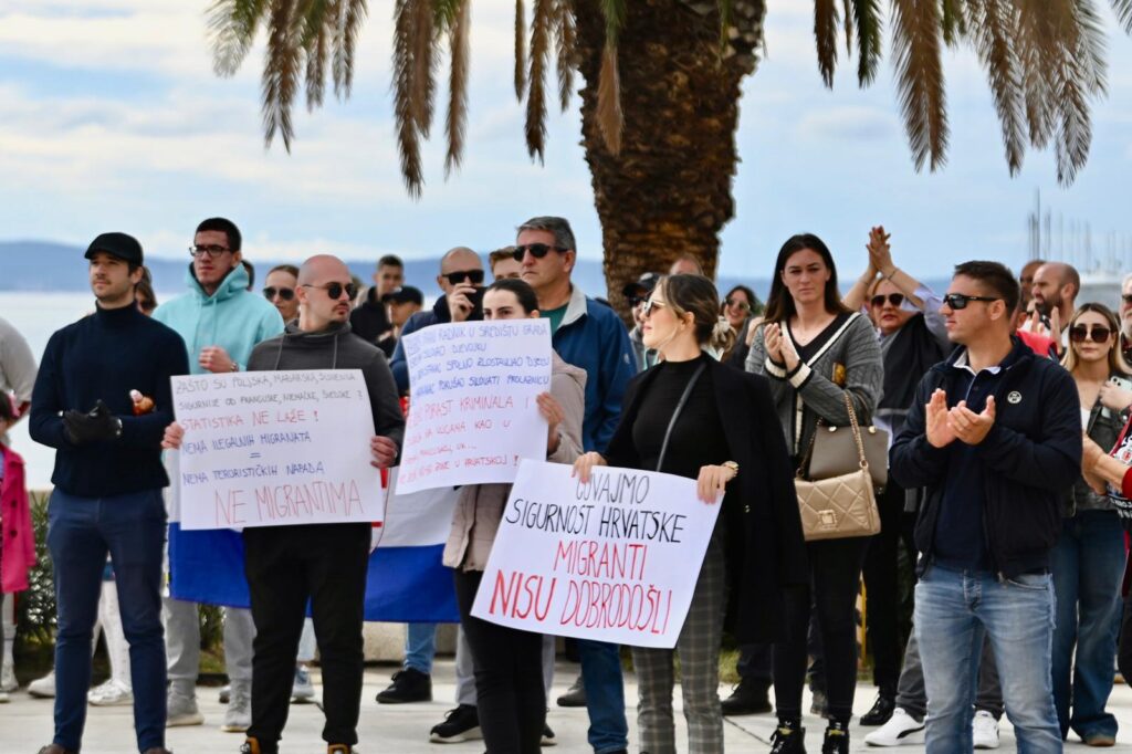 Na splitskoj Rivi danas, 9. studenoga, održan je prosvjed u organizaciji Udruge za bolju Hrvatsku, koji je krenuo u 11 sati pod sloganom: “Ne zamjeni stanovništva – Spasimo Dalmaciju u roku! Migranti i strani radnici trn su u oku!”. Odaziv je bio izuzetno nizak – nekoliko minuta prije početka, na Rivi se okupilo svega nekoliko građana, što se moglo doslovno prebrojati na prste jedne ruke. Malo kasnije, ipak se skupilo nešto – tada ih se moglo prebrojati na prste dvije ruke.