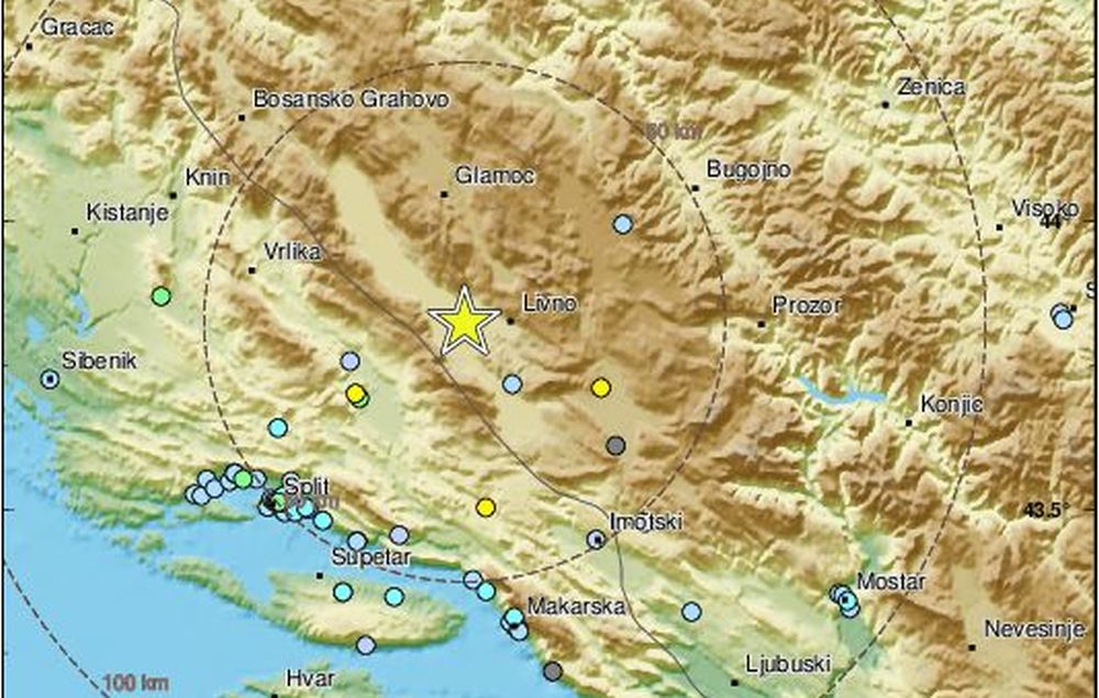 Na granici s Bosnom i Hercegovinom oko 17:30 sati zabilježen je potres magnitude 4,5 prema Richterovoj skali, javio je EMSC. Prema prvim informacijama, epicentar je bio oko devet kilometara od Livno, na dubini od oko 10 kilometara.
