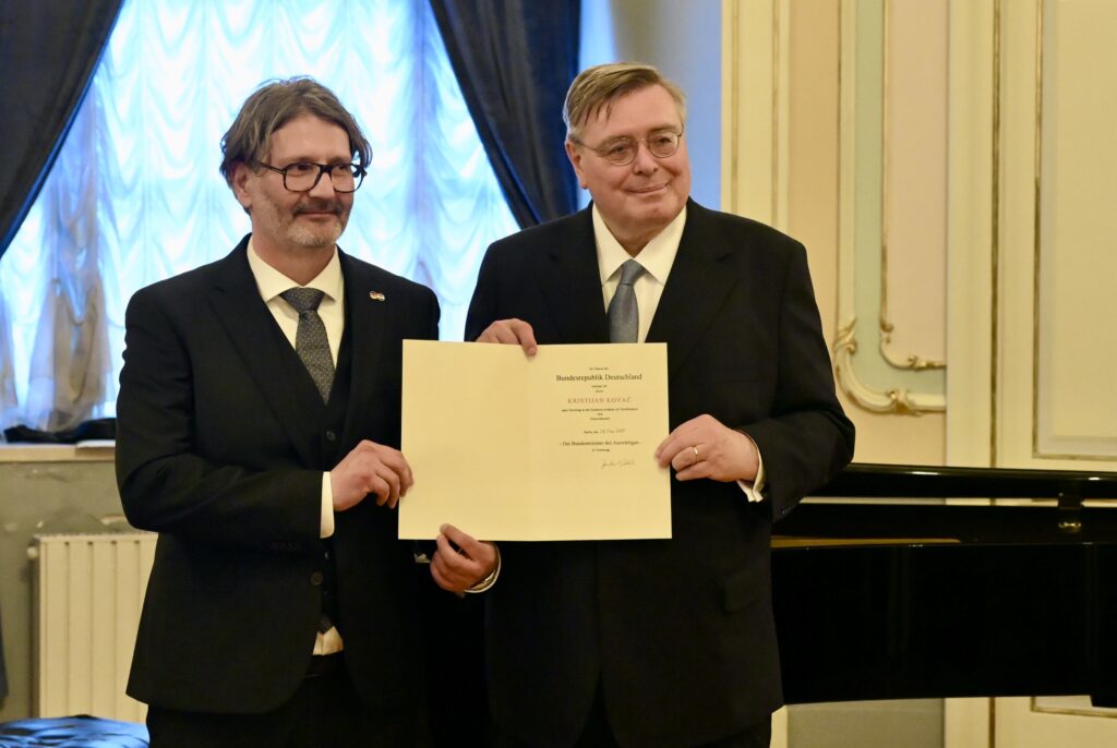 – Stajati danas pred vama u Hrvatskom narodnom kazalištu u Splitu ispunjava me zahvalnošću i ponosom. Četiri dalmatinske županije, kao i Hrvate i Nijemce, povezuje mnogo toga. Velik broj Hrvata živi u Njemačkoj, a Nijemci su stalni i rado viđeni gosti na ovom području. Uvjeren sam da postoji velik prostor za daljnje jačanje odnosa između Njemačke i juga Hrvatske. Počasni konzulat bit će most suradnje i mjesto kroz koje će njemački građani moći ostvarivati svoja prava i interese na području ove četiri županije, rekao je Kovač.