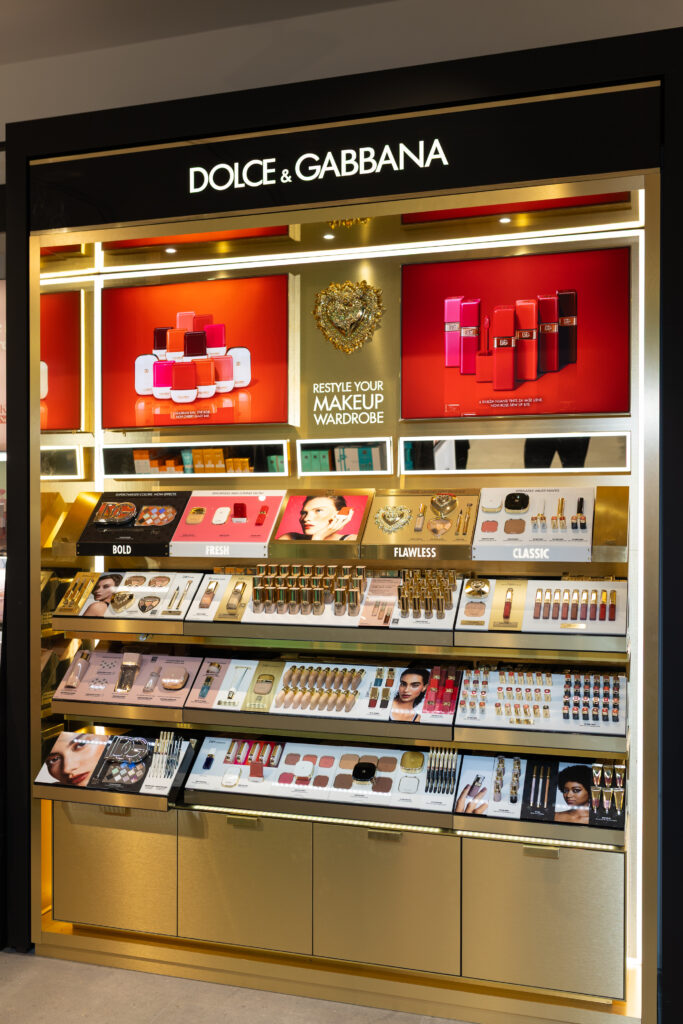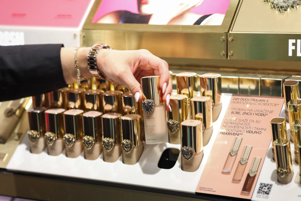 Posebno mjesto unutar poslovnice zauzima Dolce & Gabbana Make-up, koji je predstavljen kroz istaknuti brend corner i dostupan isključivo na ovoj lokaciji, dodatno naglašavajući premium karakter ponude.