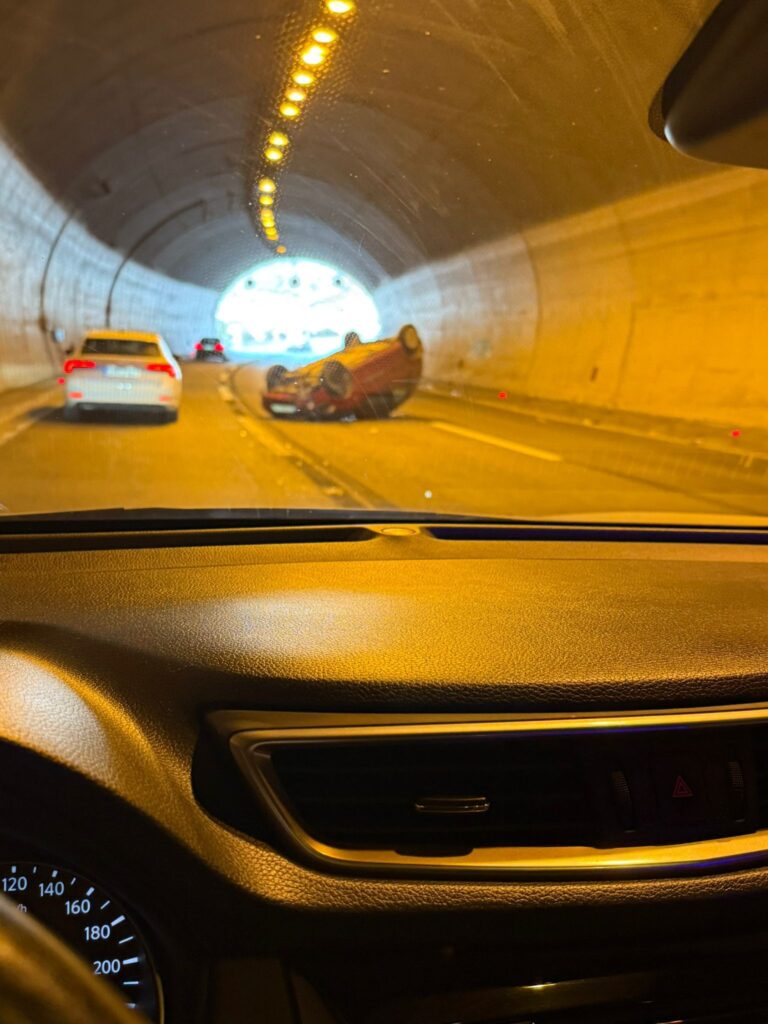 Na brzoj cesti Solin-Klis, u tunelu Klis-Kosa oko 12.30 došlo je do prometne nesreće u kojoj se jedno osobno vozilo prevrnulo i završilo na krovu, doznajemo od policije.