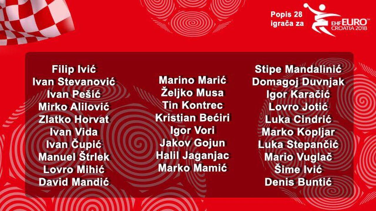 Hrvatski rukometni izbornik Lino Červar objavio je popis 28 igrača na koje računa za Europsko prvenstvo koje se od 12. do 28. siječnja igra u Hrvatskoj.