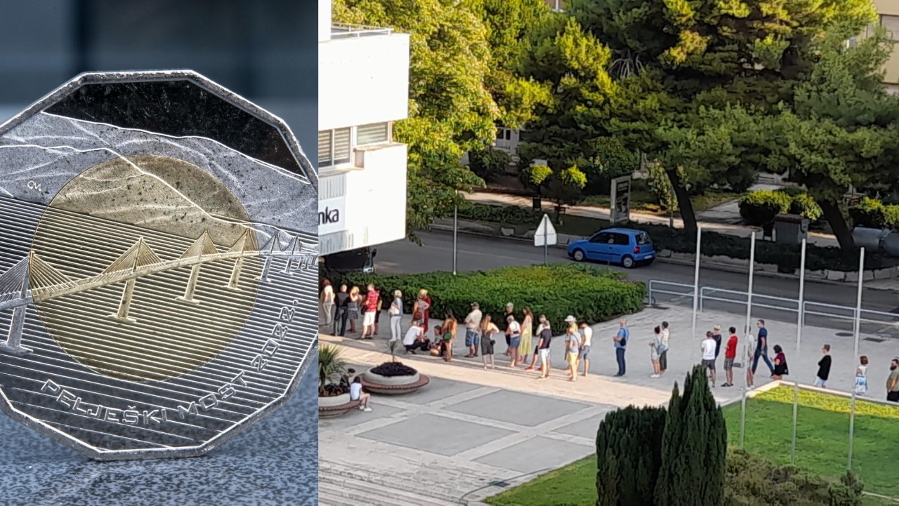 Od ranog jutra Splićani čekaju u redu za kovanicu s Pelješkim mostom od 25 kuna