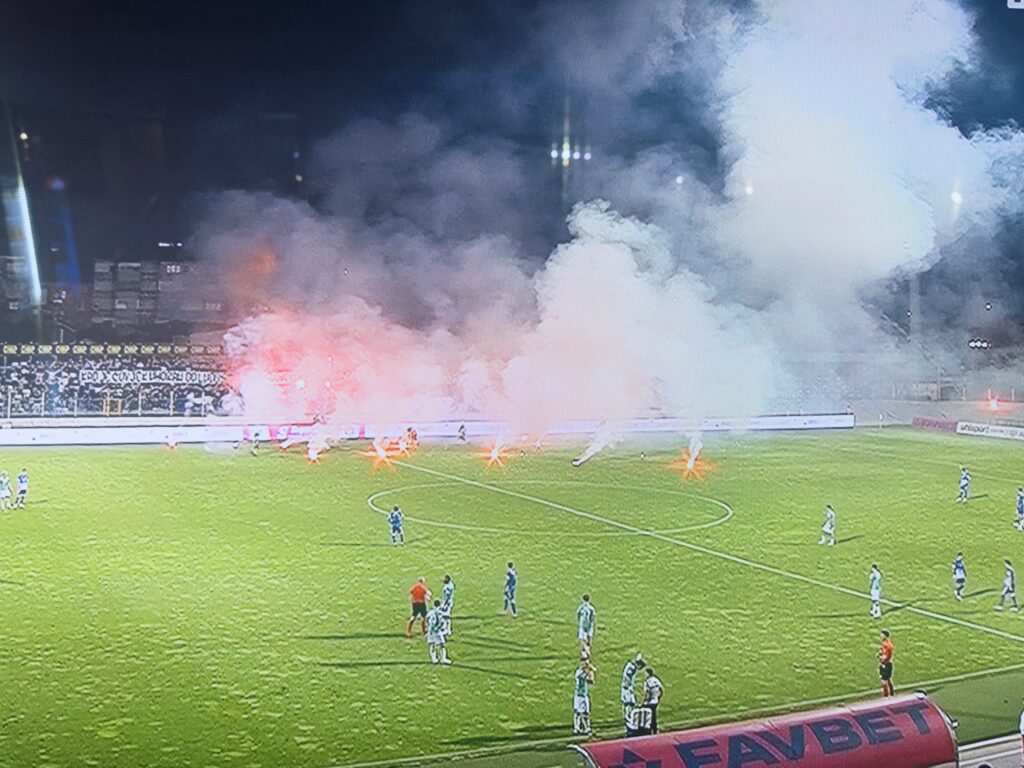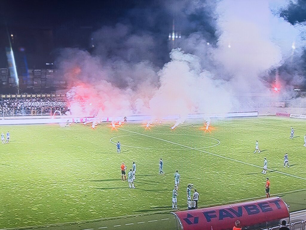 Na isteku 90. minute Torcida, koja je bila smještena na istočnom sektoru stadiona u Kranjčevićevoj, aktivirala je sav arsenal koji je, valjda, čuvala za proslavu naslova prvaka.